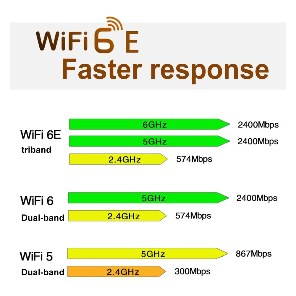 Característica:1. 2,4G/5G/6G:Admite opciones tribanda de 2,4G/5GHz/6GHz. 2,4G/574Mbps; 5G/2400Mbps; 6G/2400Mbps (se dice que alcanza los 2882Mbps).