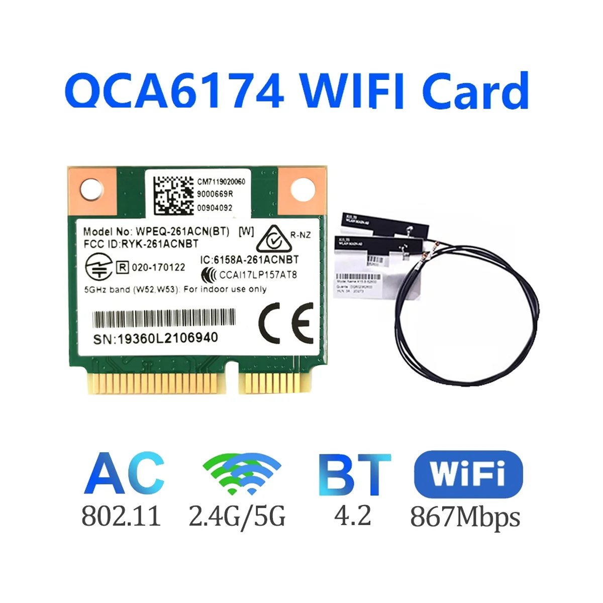 Comprar Tarjeta WIFI QCA6174 WPEQ-261ACN(BT) + 2xantena 802.11AC 867M QCA6174 Bluetooth 4,2 WIFI 5 Mini tarjeta PCIe