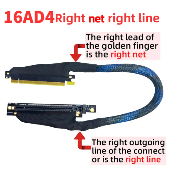1.Cable de extensión de tarjeta gráfica PCIE 4,0 X16, ancho de banda bidireccional de 32 GB/S.