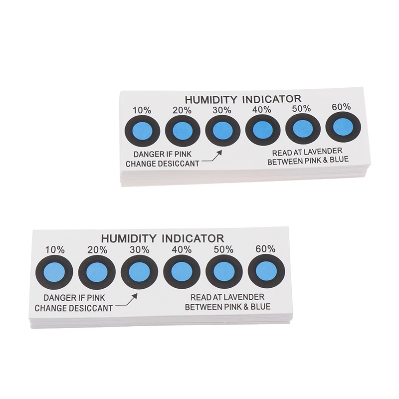 Comprar Tarjetas indicadoras de humedad para prueba de humedad en contenedores cerrados, papel de prueba, tarjeta azul de seis puntos, 10%-60%, 50 unids/lote por bolsa