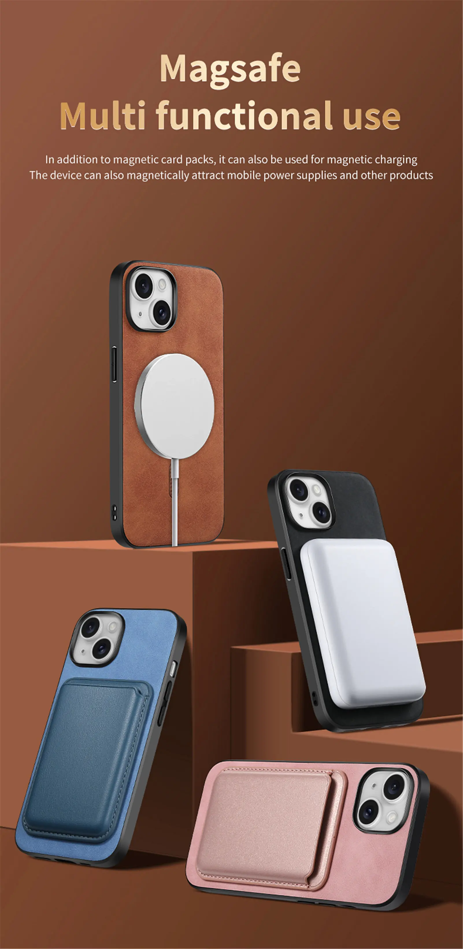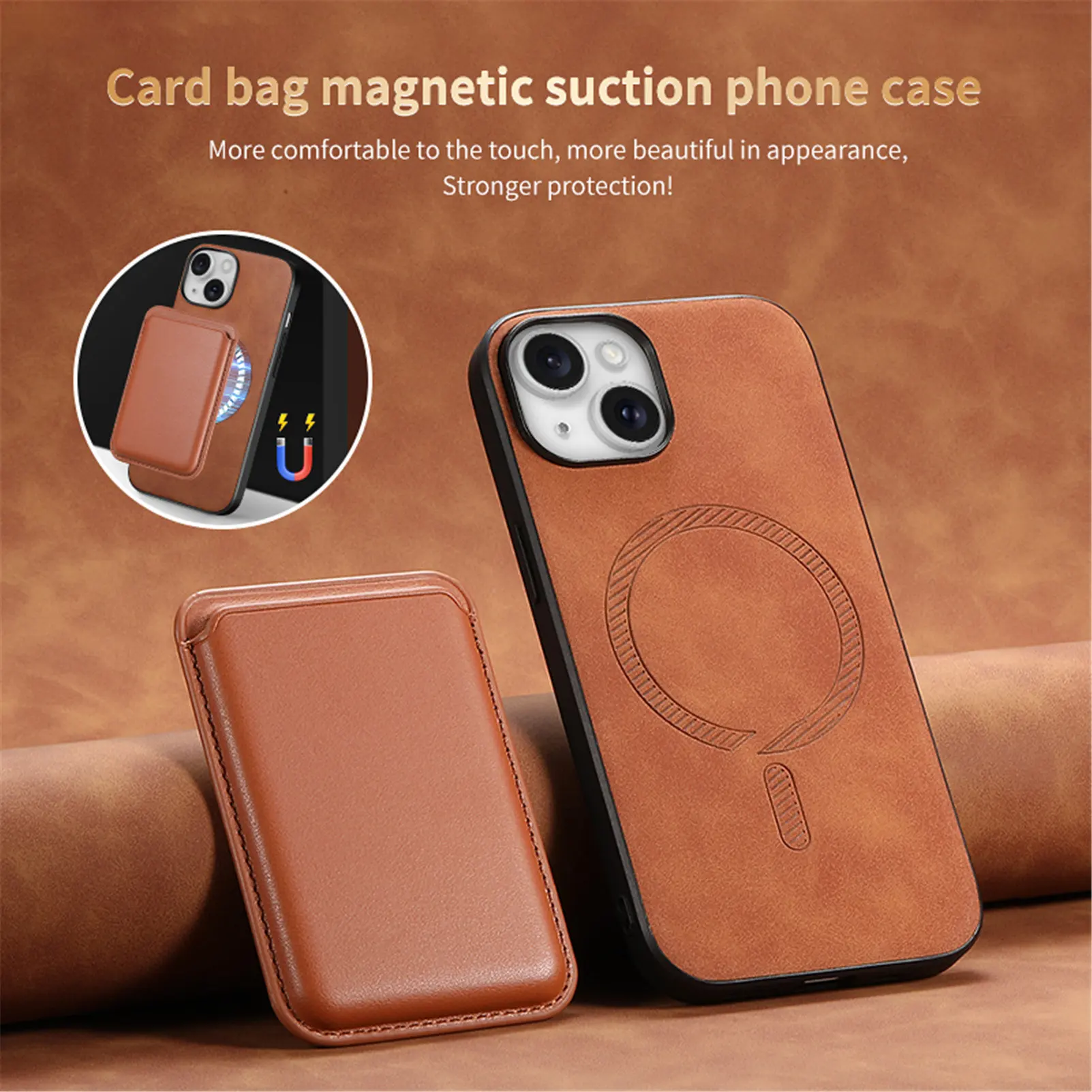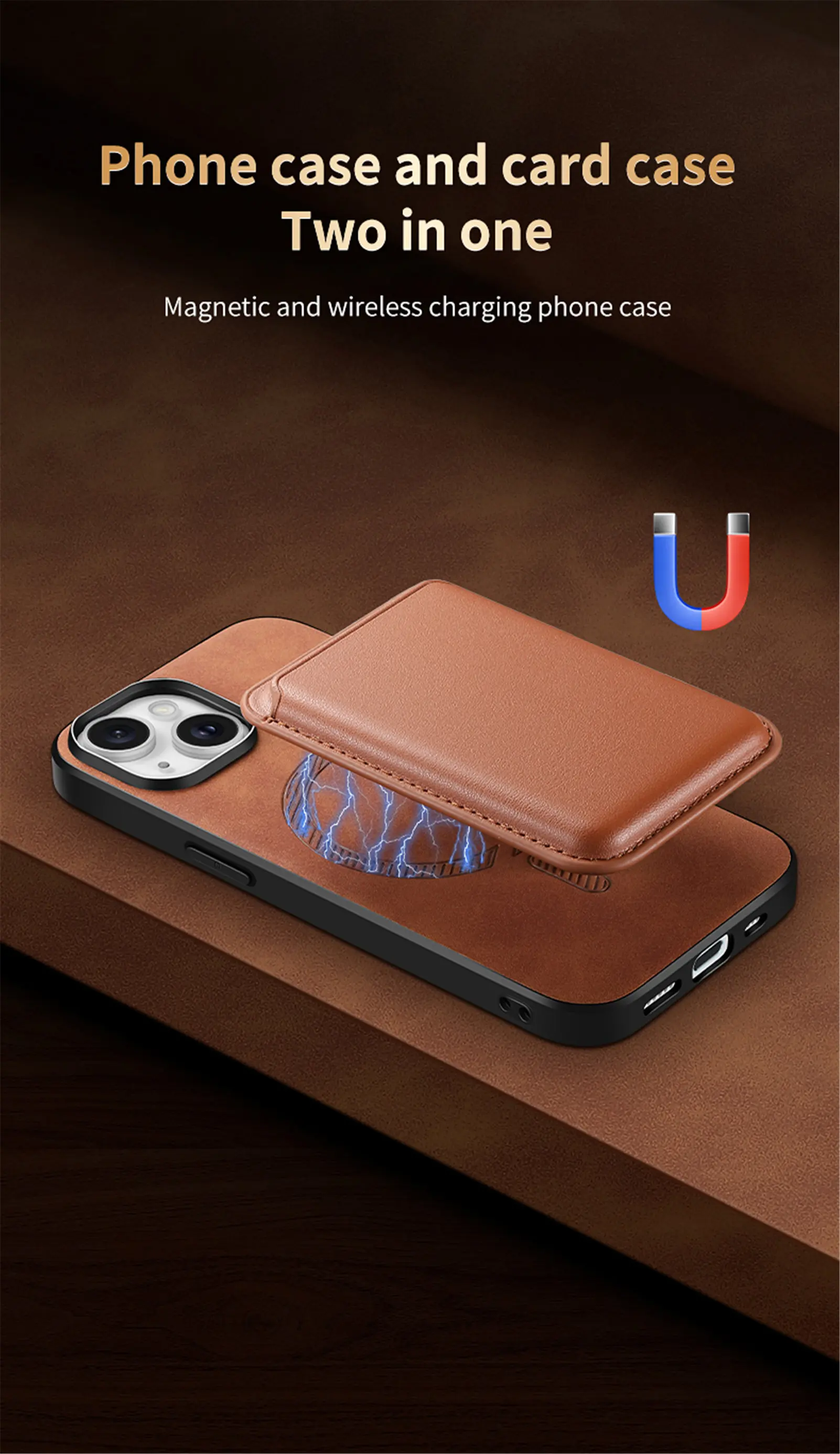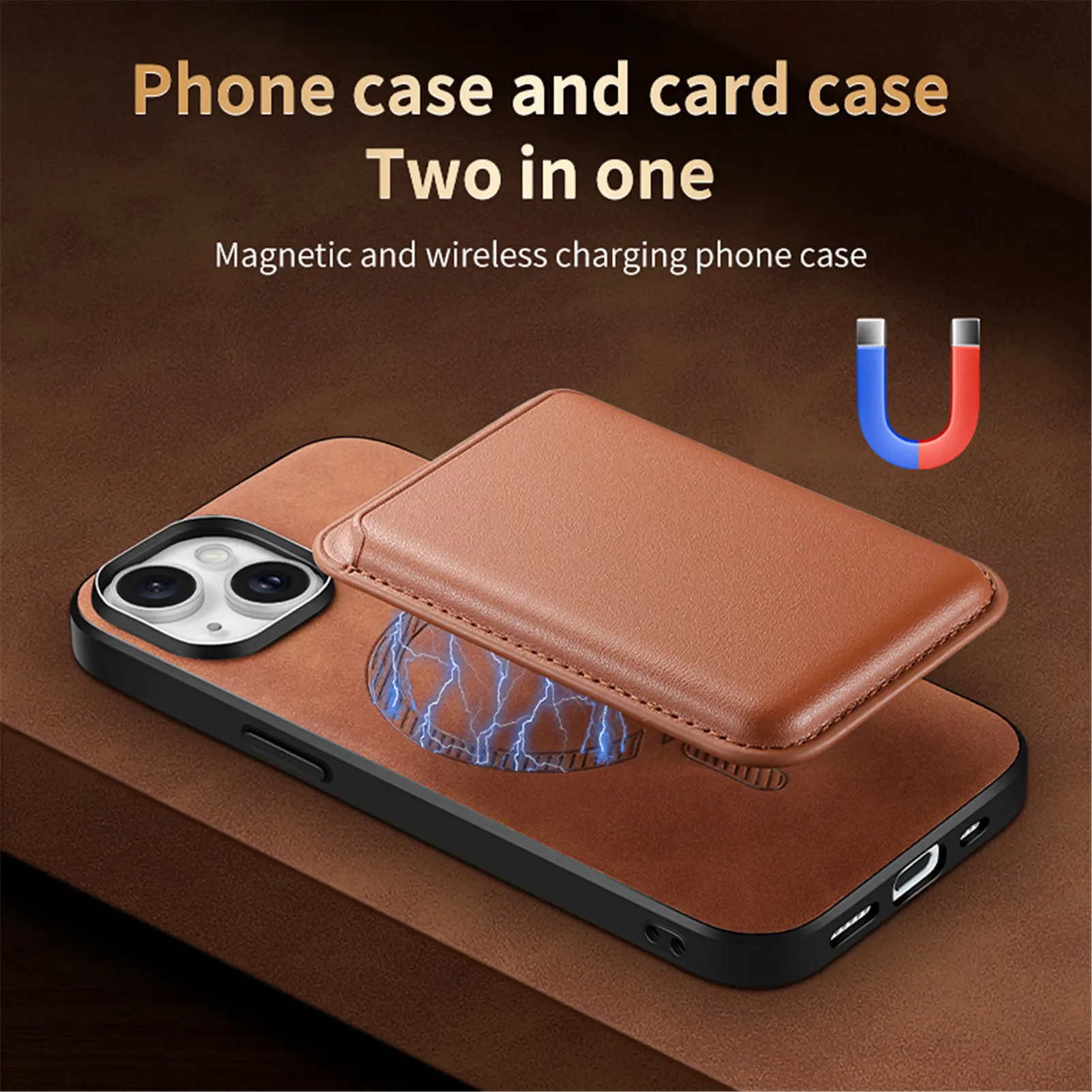 2 en 1 soporte de tarjetas extraíble Funda de cuero de carga inalámbrica para iPhone 15 Pro Max 14 Plus 13 12 11 7 8 SE 2022 funda de bolsa