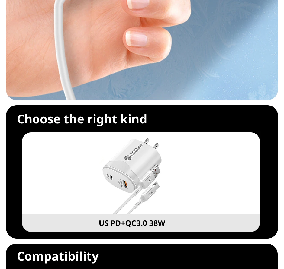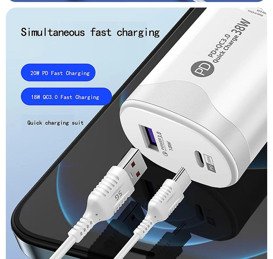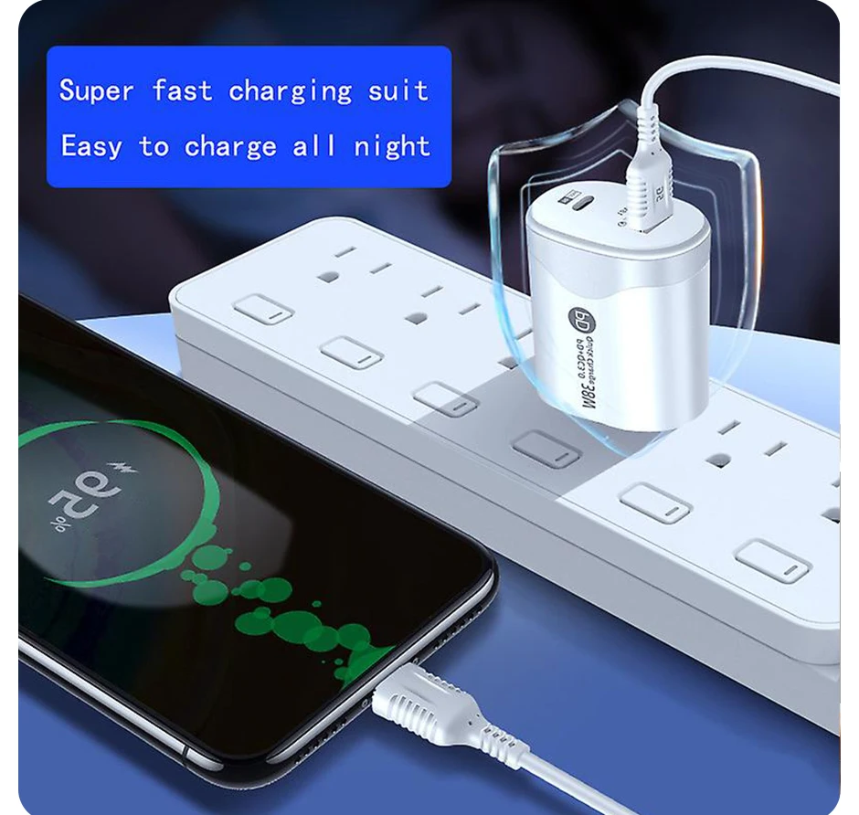 • Cargador de pared de doble puerto:Cargue dos dispositivos simultáneamente con el diseño de puerto dual, ahorrando tiempo y aumentando la comodidad.