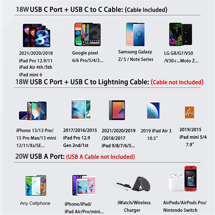 Ampliamente compatibilidad: USB C & USB un cargador rápido para el iPhone 14/14 Plus/14 Pro / 14 Pro Max / 14 / 13 / 13 Pro Max / 13 mini/12/12 Pro Max / 12 mini/SE/11/XS/Xs Max/XR/X/8, samsung Galaxy S22 / S21 / S20 / S10 / S9 / S8, Nota 20 / 10/9/8, a10e/12/32, Google Pixel 6 / 5 / 4a / 4XL / 4 / 3a / 3XL/3/2, teléfonos Android.