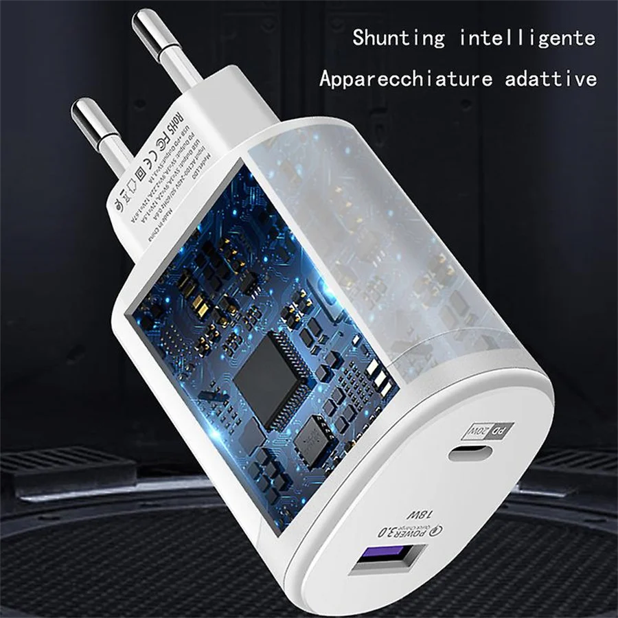 Diseño de Puerto USB doble inteligente: con puerto de entrega de energÃa USB C de 20W y puerto de cargador rápido USB A de 18W, identifica inteligentemente su dispositivo para cargar de forma segura dispositivos duales a toda velocidad simultáneamente, carga a toda velocidad dos dispositivos simultáneamente.