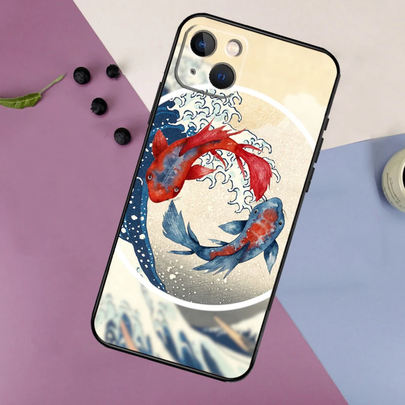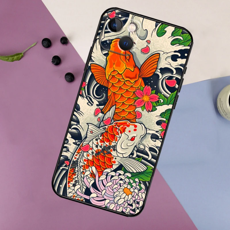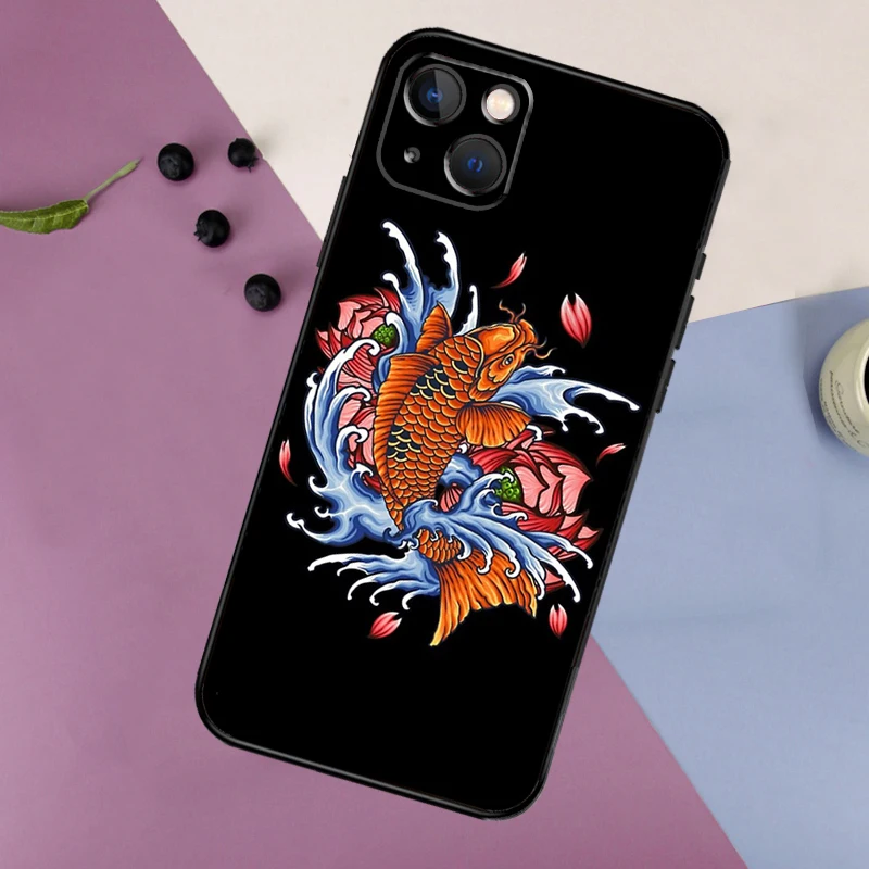 Tatuaje japonés Koi Dragon Wave funda de silicona para iPhone 17 15 14 13 12 11 Pro Max 16 Plus 12 13 Mini 16e 17 Air contraportada