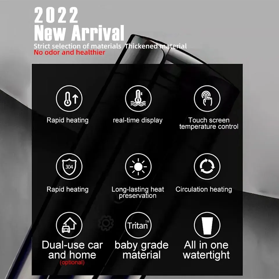 Comprar Taza de calefacción eléctrica para coche, hervidor de acero inoxidable con Control inteligente de temperatura, pantalla táctil LCD, calentador de tazas de café de viaje, 12V y 24V