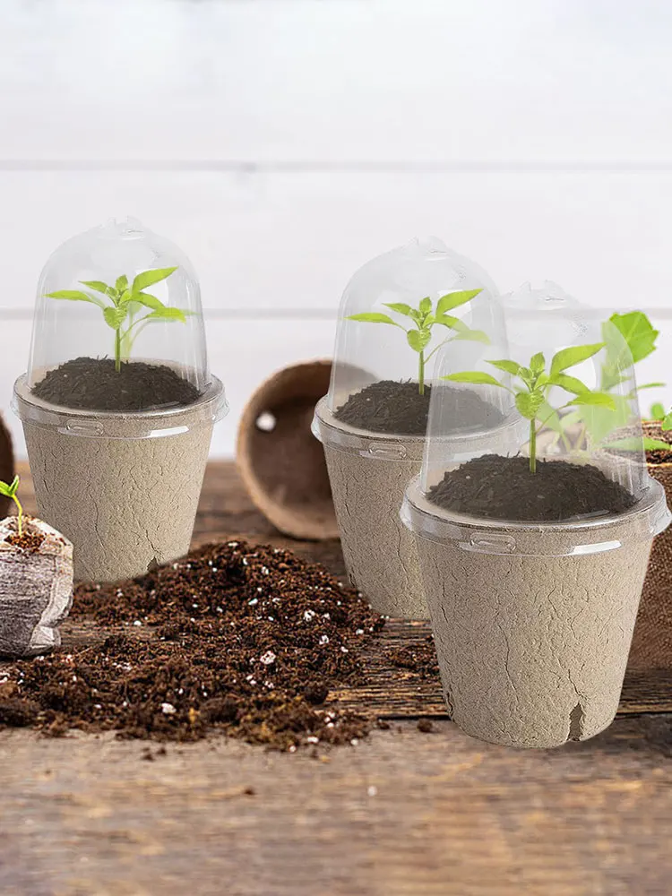 10 Uds. Taza de plántula, maceta de germinación, tapa transparente, caja de cría de invernadero, suministros de jardinería versátiles biodegradables