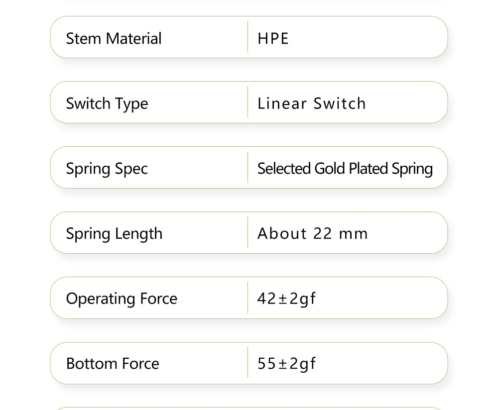 Comprar Tbcats Eclair interruptor lineal, 5 pines, RGB, SMD, 55g, mx, Teclado mecánico, nailon, PA666, HPE, largo, chapado en oro, resorte, 60M, Beige, Verde