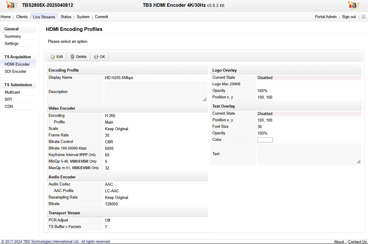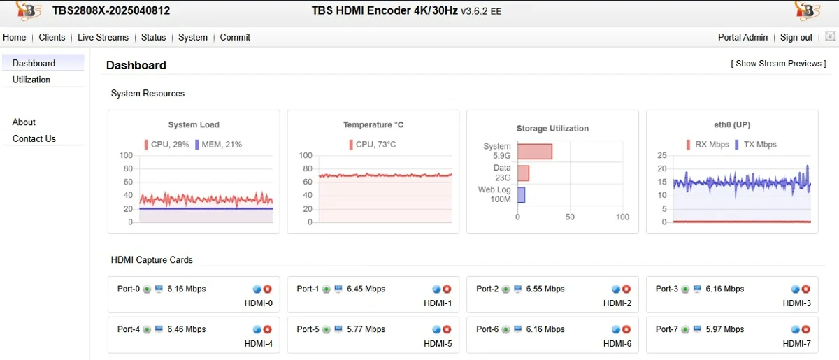 • La GUI Kylone basada en web permite a los usuarios monitorear el estado en tiempo real del codificador HDMI 4K TBS2808X, configurar perfiles de codificación, administrar la superposición OSD y otras funciones.
