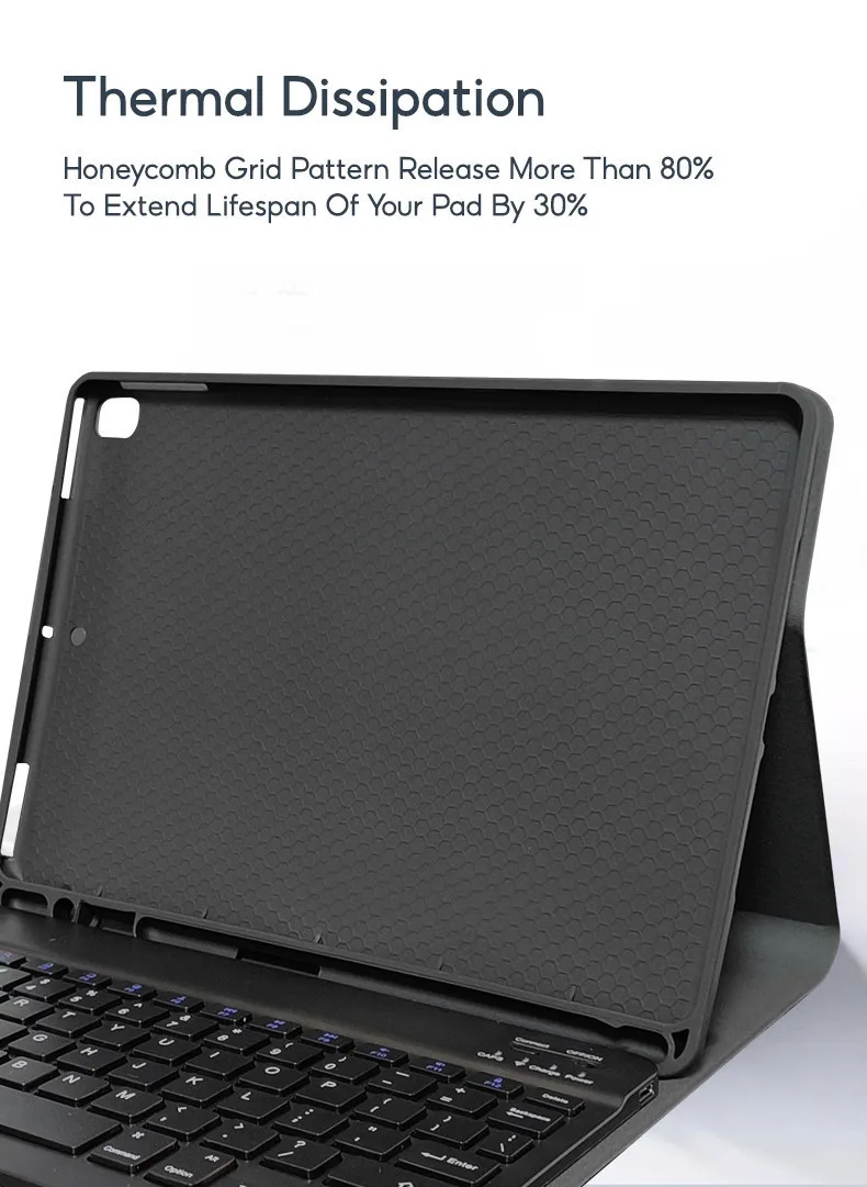 Nuestro producto utiliza parte posterior de TPU suave, no agrieta el iPad y nunca deja rayones.