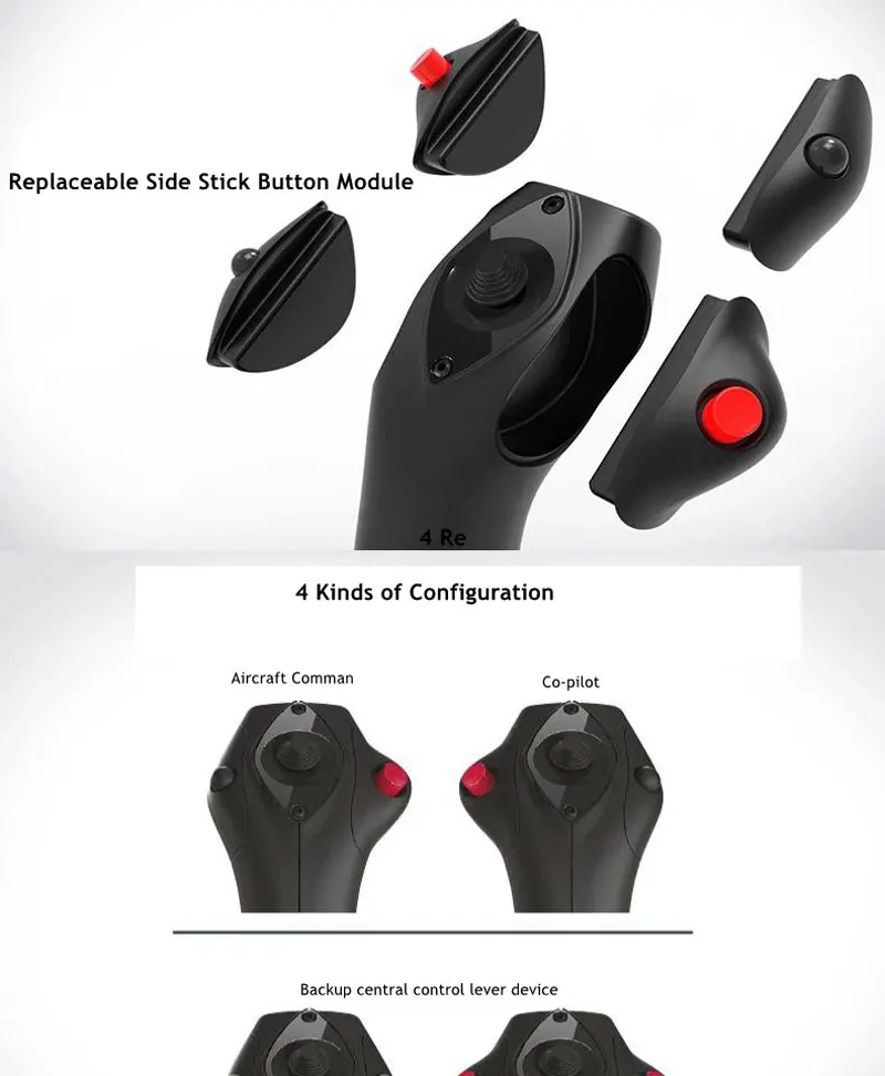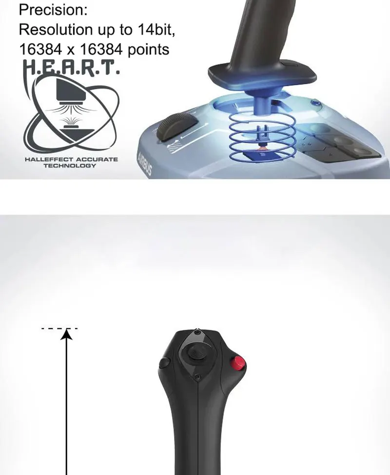 - 1: 1 Reproducción ergonómica: Tanto el bastidor lateral como la válvula de mariposa se derivan de los controles de vuelo clásicos autorizados por Airbus.