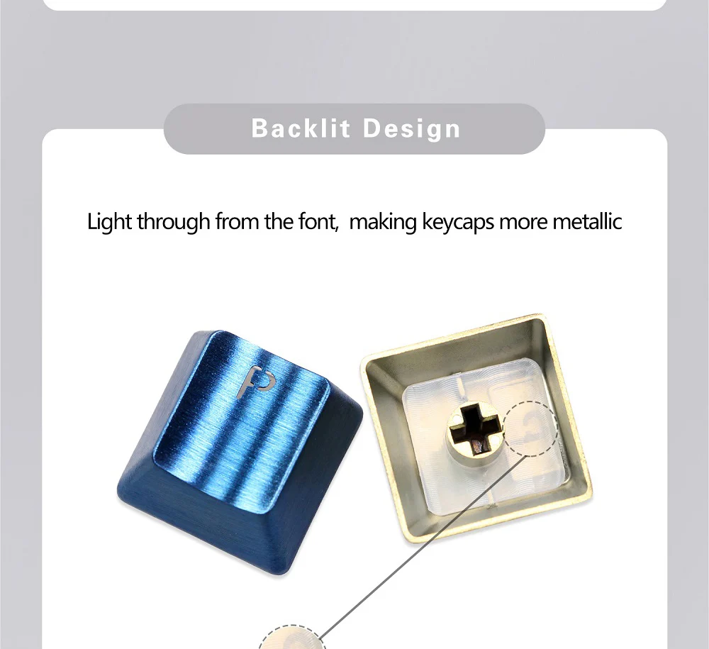 Comprar Teamwolf-Tapa de tecla de Metal MX de acero inoxidable para teclado Alpha, 26 teclas de luz a través de la parte trasera iluminada, negro, azul, dorado, gradiente