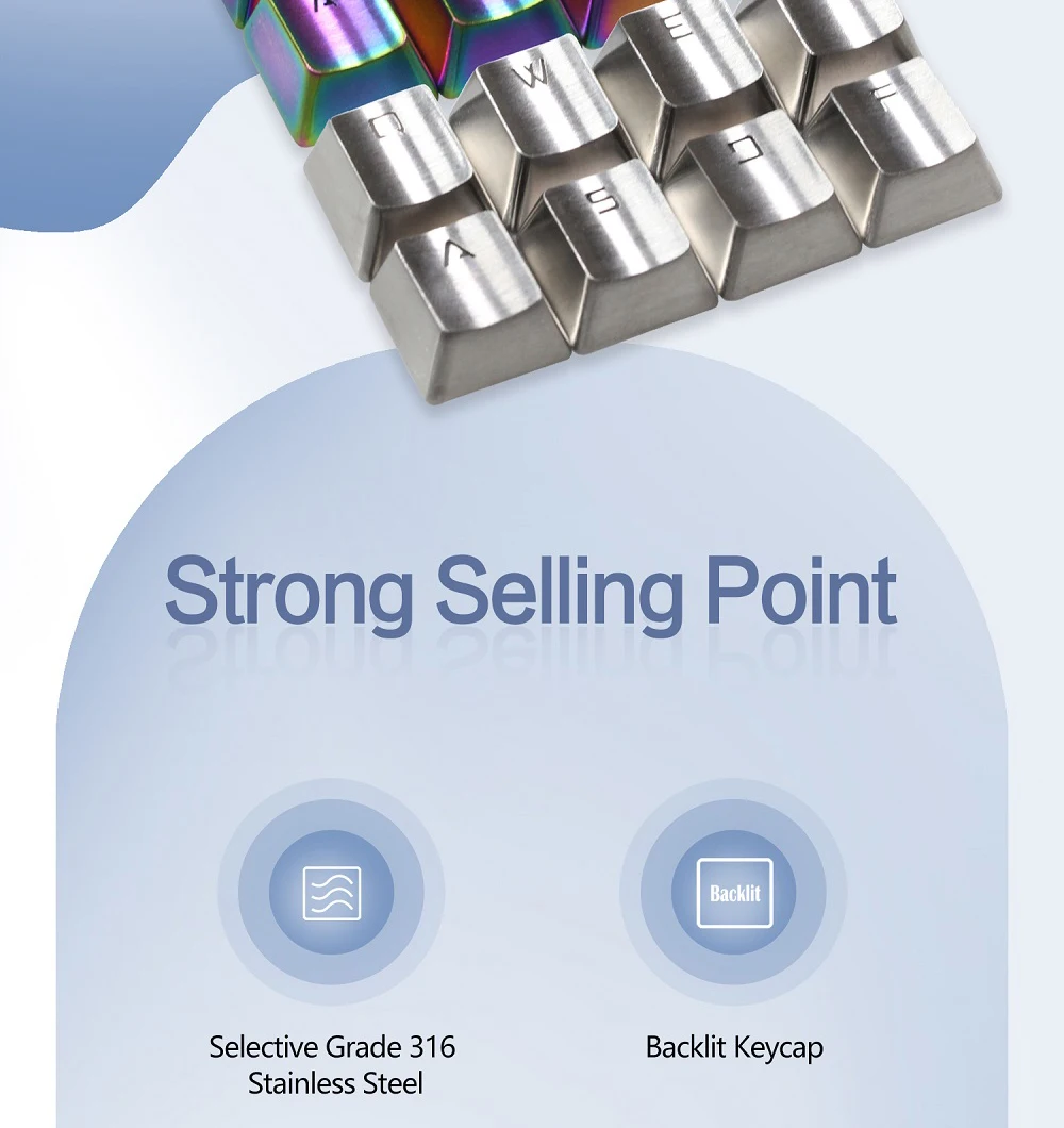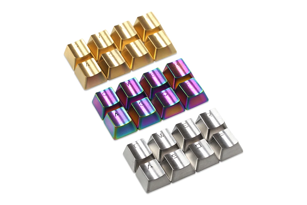 Comprar Teamwolf-Tapa de tecla de Metal MX de acero inoxidable para teclado de juegos, QWERWASD R2 R3, luz a través de la parte trasera iluminada, negro, azul, dorado, gradiente