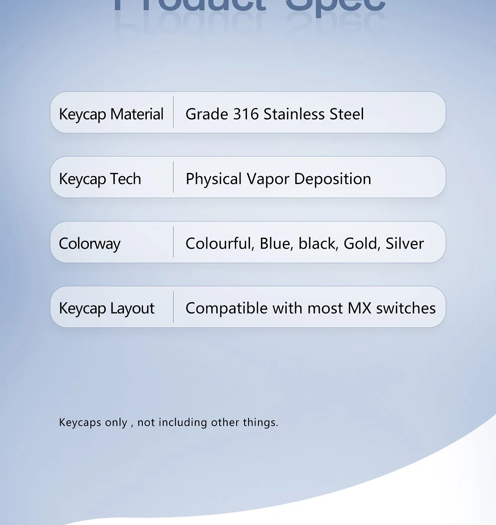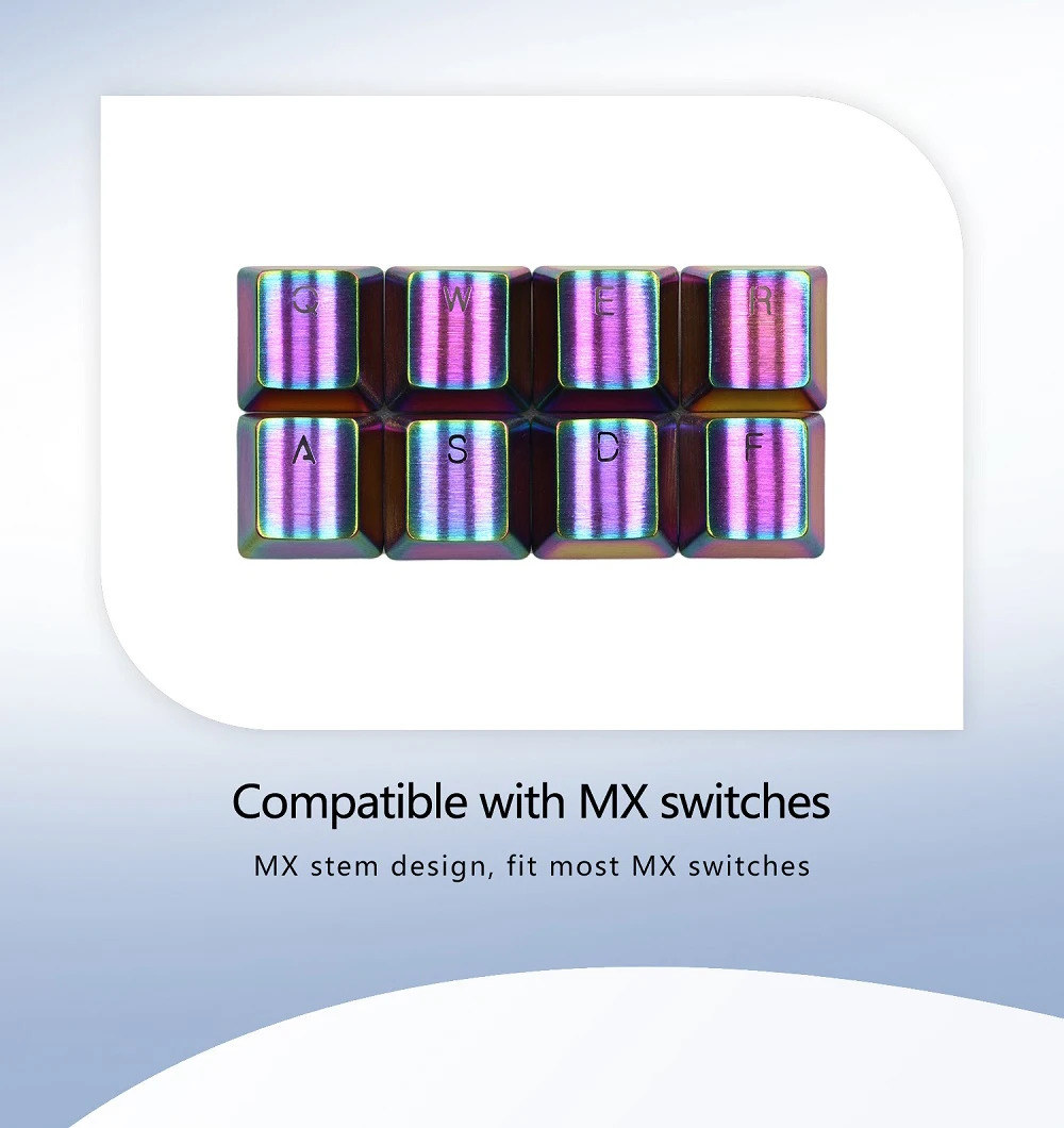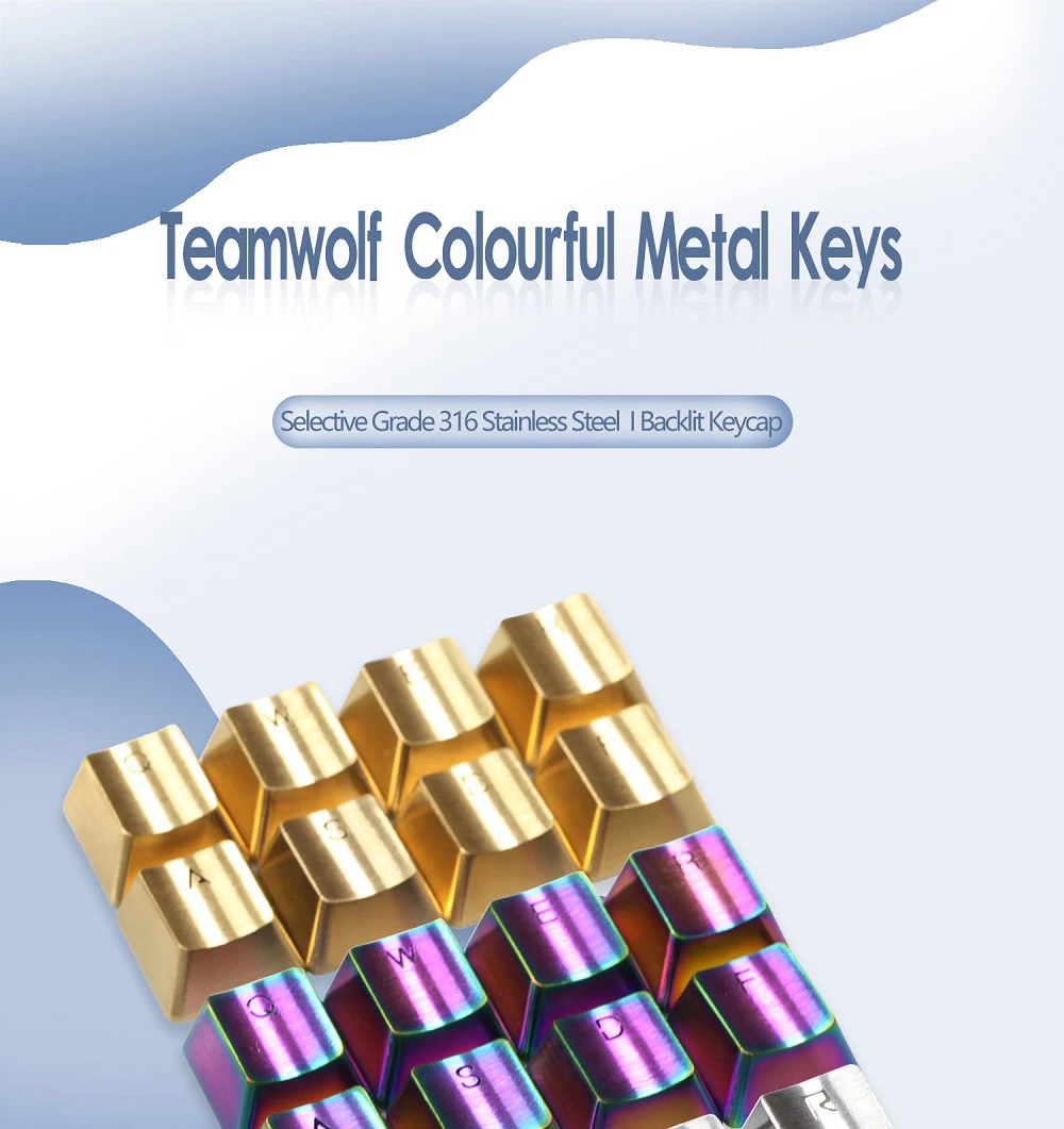 Teamwolf-Tapa de tecla de Metal MX de acero inoxidable para teclado de juegos, QWERWASD R2 R3, luz a través de la parte trasera iluminada, negro, azul, dorado, gradiente
