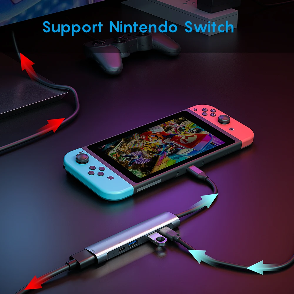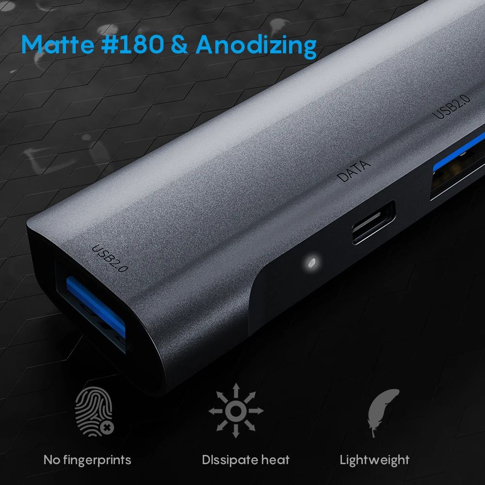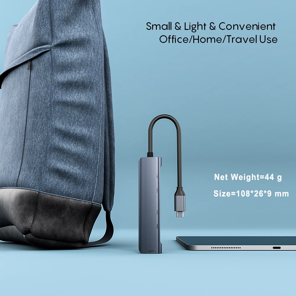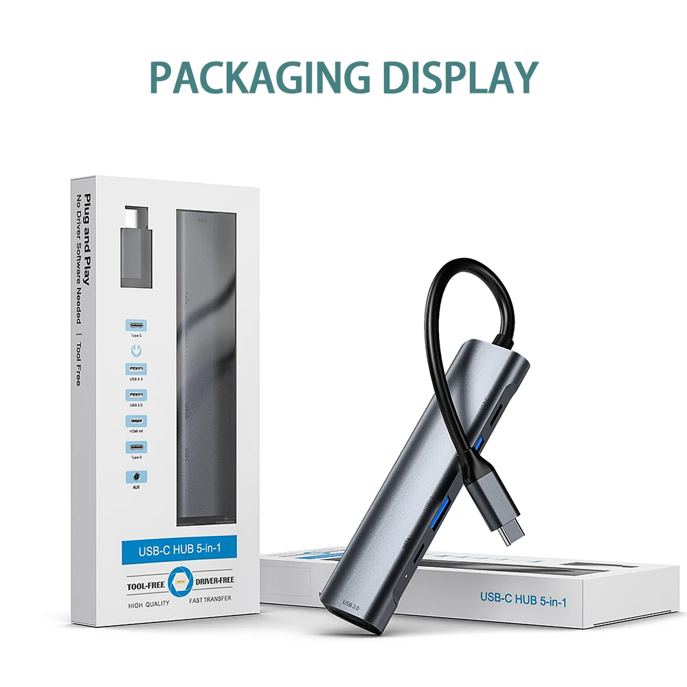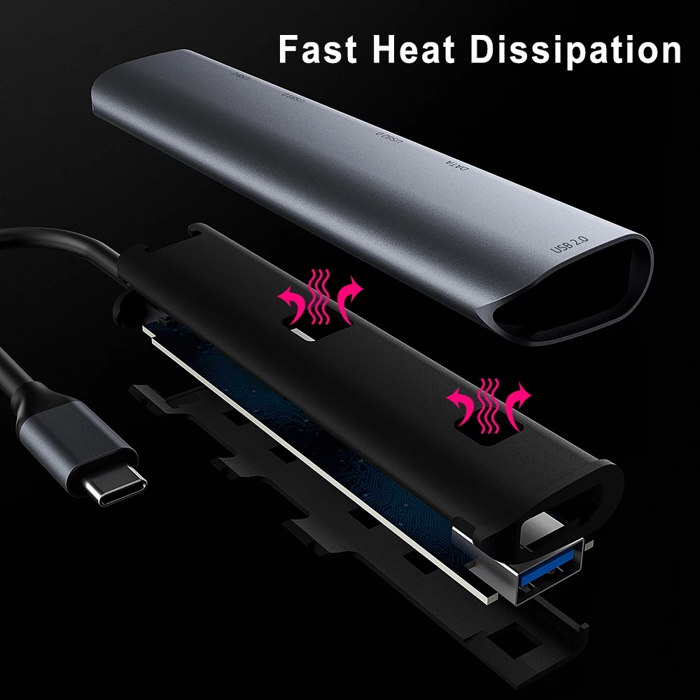 Tebe 5 en 1 Hub de tipo C a 4K, adaptador de 3,5mm, conector de Audio USB C a USB 3,0/2,0 60W, estación de acoplamiento PD tipo C para Macbook