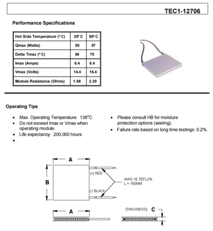 TEC1-12706 12V 6A refrigerador semiconductor refrigerador termoeléctrico Peltier DIY 40*40mm 40x40mm