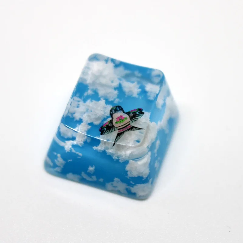 Tema de nube personalizado ESC Keycap puro hecho a mano transparente 3D resina Keycaps patrón de personalidad Arco Iris cometa cielo azul nube blanca