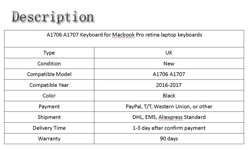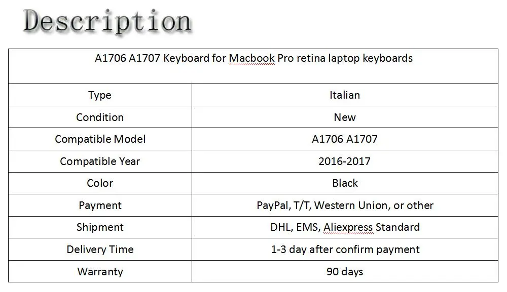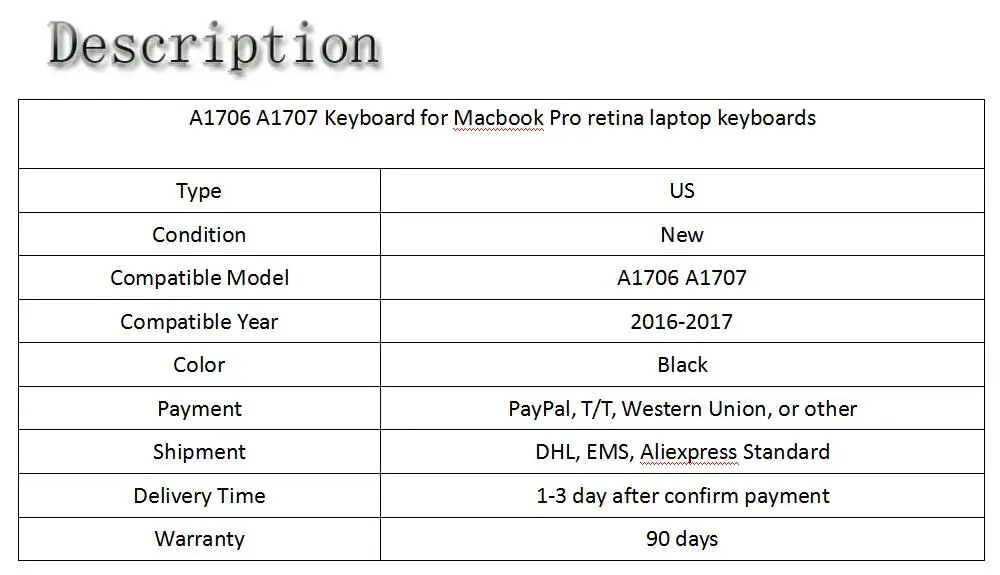 Comprar Teclado A1706 A1707 para Macbook pro retina, 2016, 2017, MLH12, MPXV2, EMC3071, EMC3163