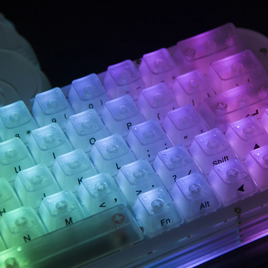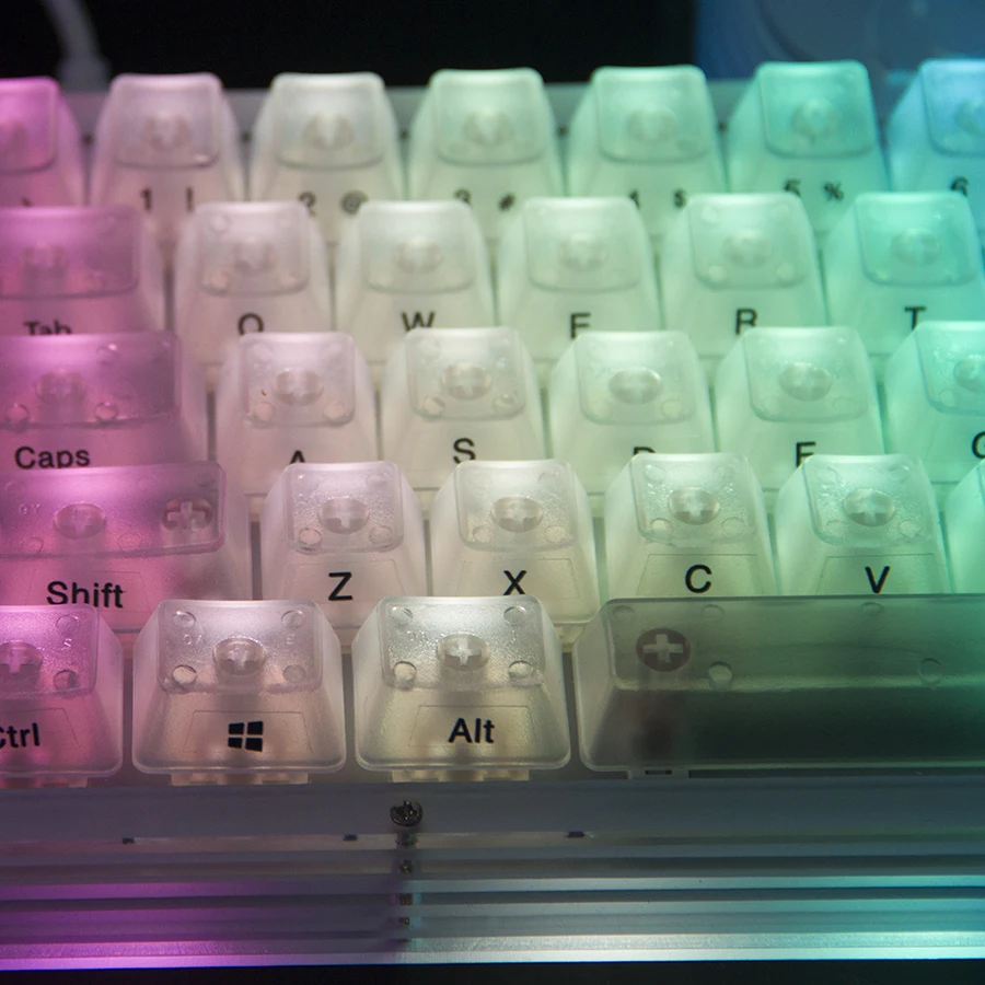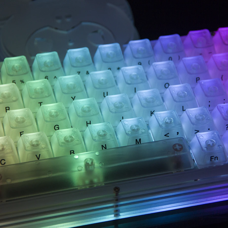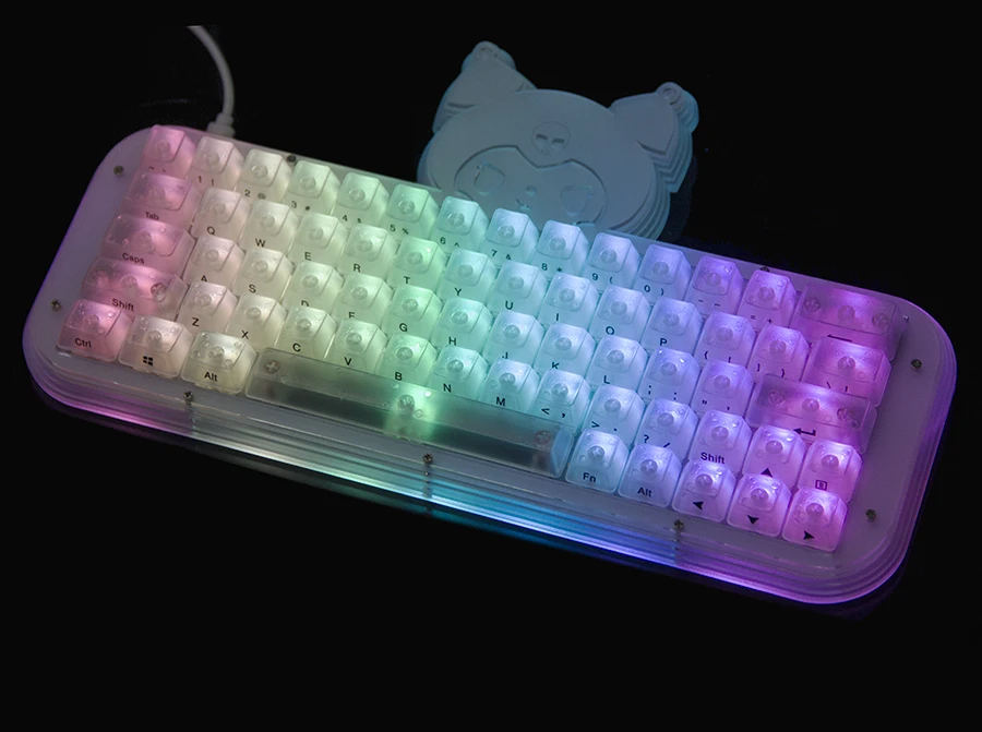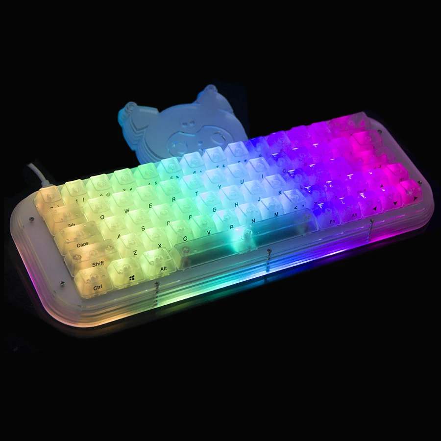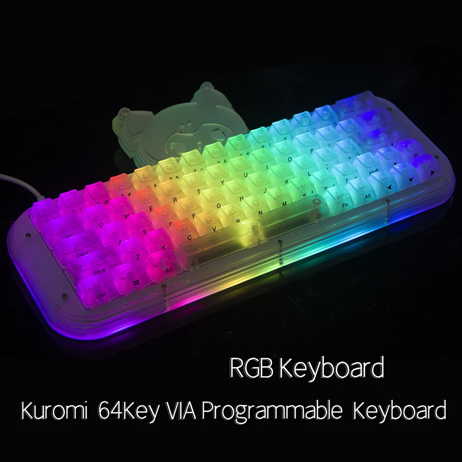 Comprar Teclado de acrílico de dibujos animados, accesorio mecánico con ajuste RGB de 64 teclas, Macro transparente programable