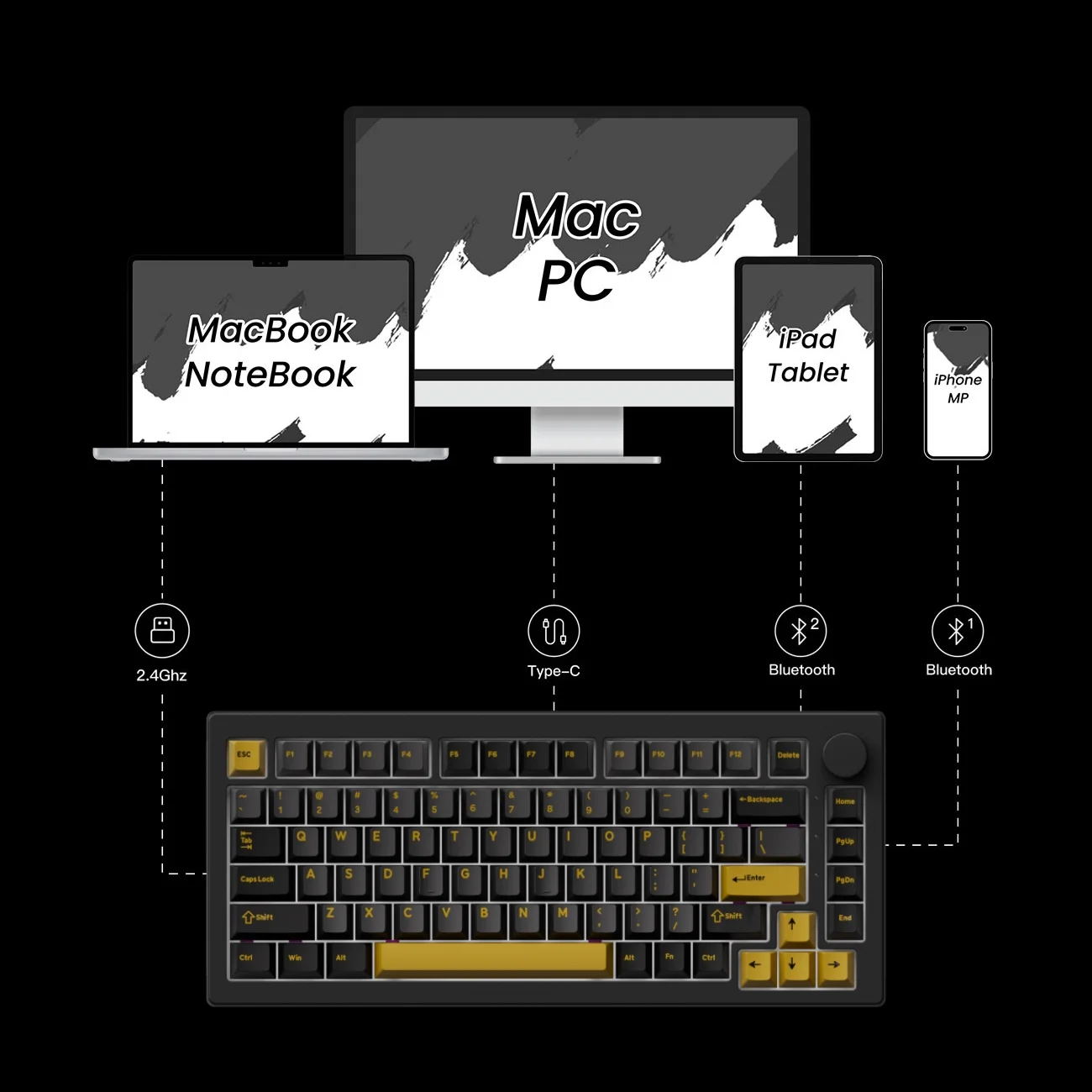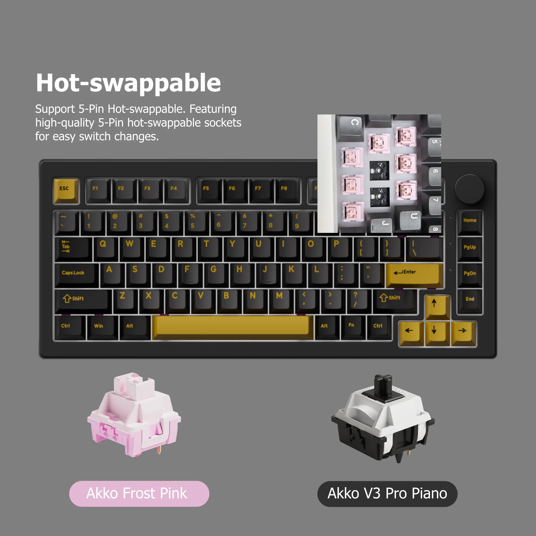 Teclado mecánico Akko 5075 V3 75% ANSI-US con volumen RGB intercambiable en caliente USB tipo C con cable/2,4 g y BT5.0 teclado para juegos inalámbrico