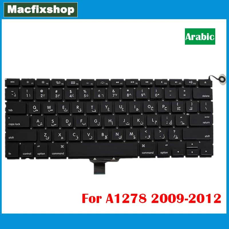 Comprar Teclado árabe A1278 para ordenador portátil 2009 2010 2011 2012 año para MacBook Pro 13,3 pulgadas AR A1278 teclado retroiluminado reemplazo probado