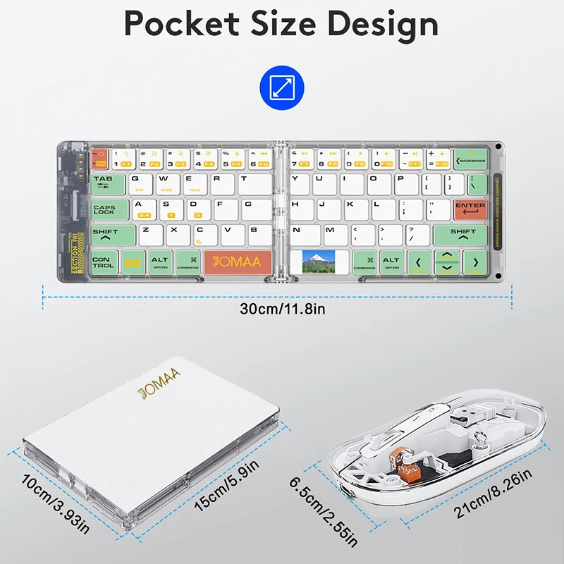 Delgado y portátil: el teclado y el mouse plegables son muy portátiles, el teclado y el mouse son livianos, ya sea que viaje o viaje, es muy conveniente llevar este teclado y mouse transparente con una tableta o un teléfono móvil.