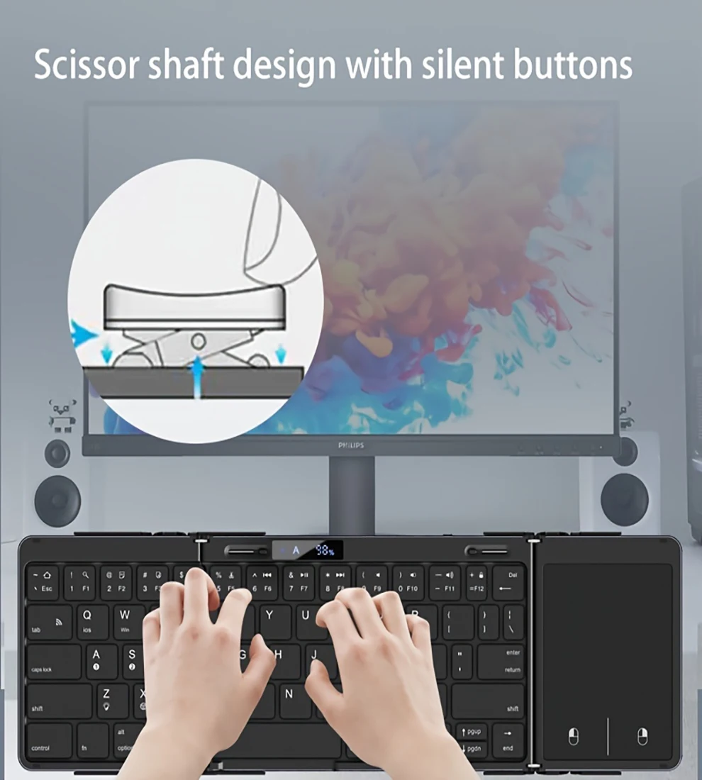 【Resistente y duradero】El marco exterior está hecho de aleación de aluminio de alta calidad, que se puede utilizar durante mucho tiempo y puede soportar daños causados por golpes e impactos. Los imanes incorporados mantienen el teclado plegable en su lugar, asegurando que no se abra accidentalmente cuando se coloque en un bolso o bolsillo.