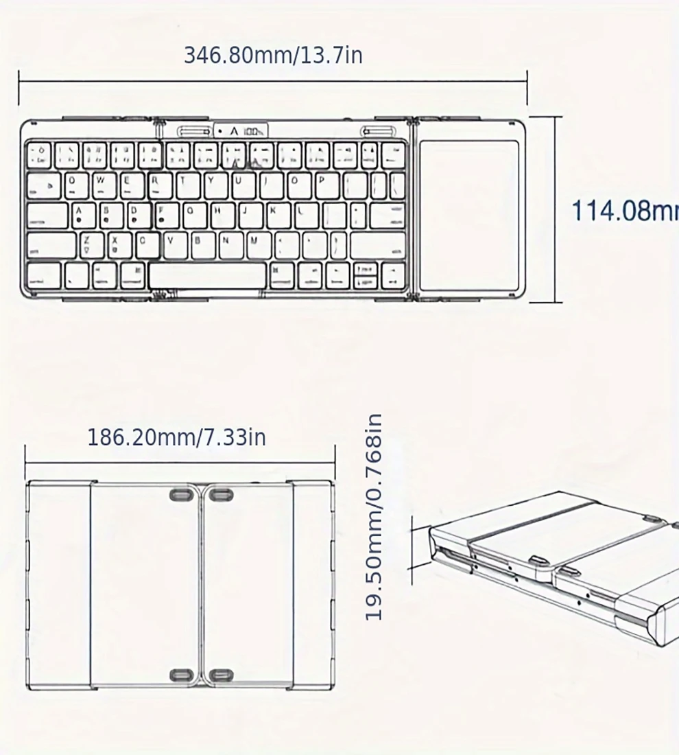 Teclado Bluetooth plegable con panel táctil o teclado numérico teclado plegable inalámbrico recargable para Windows/iOS/Android/Mac