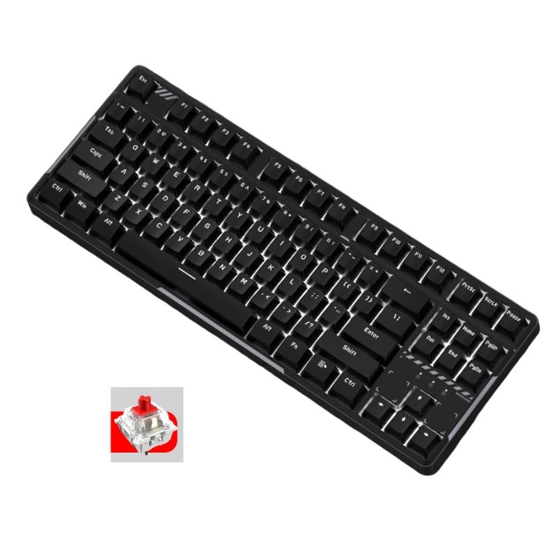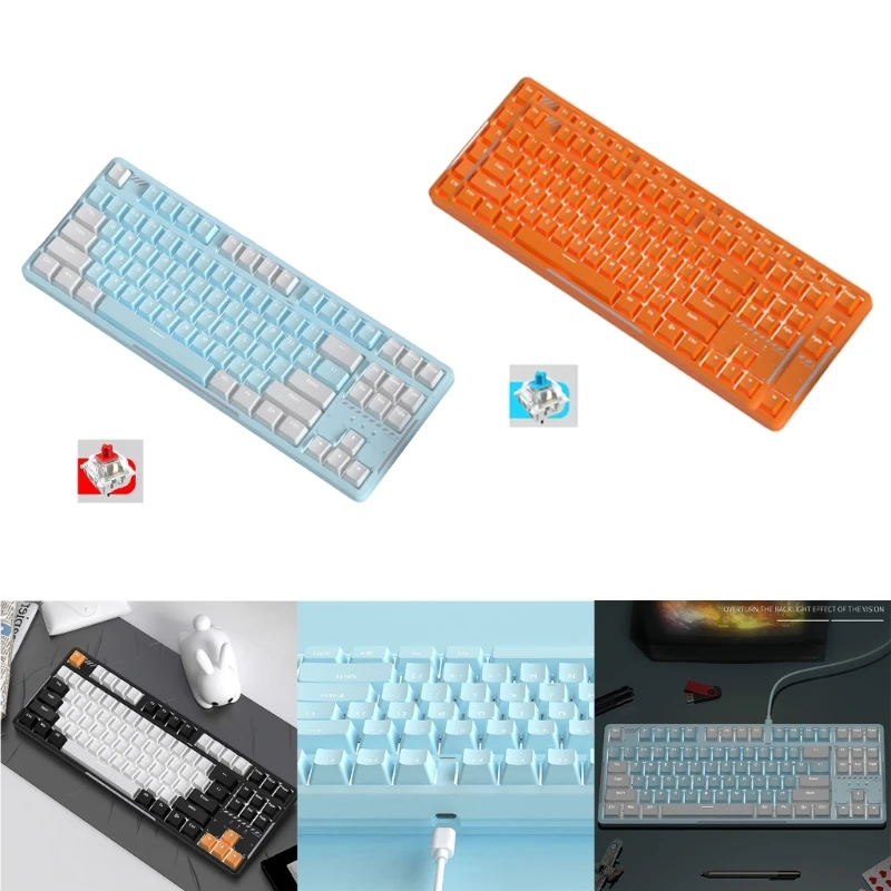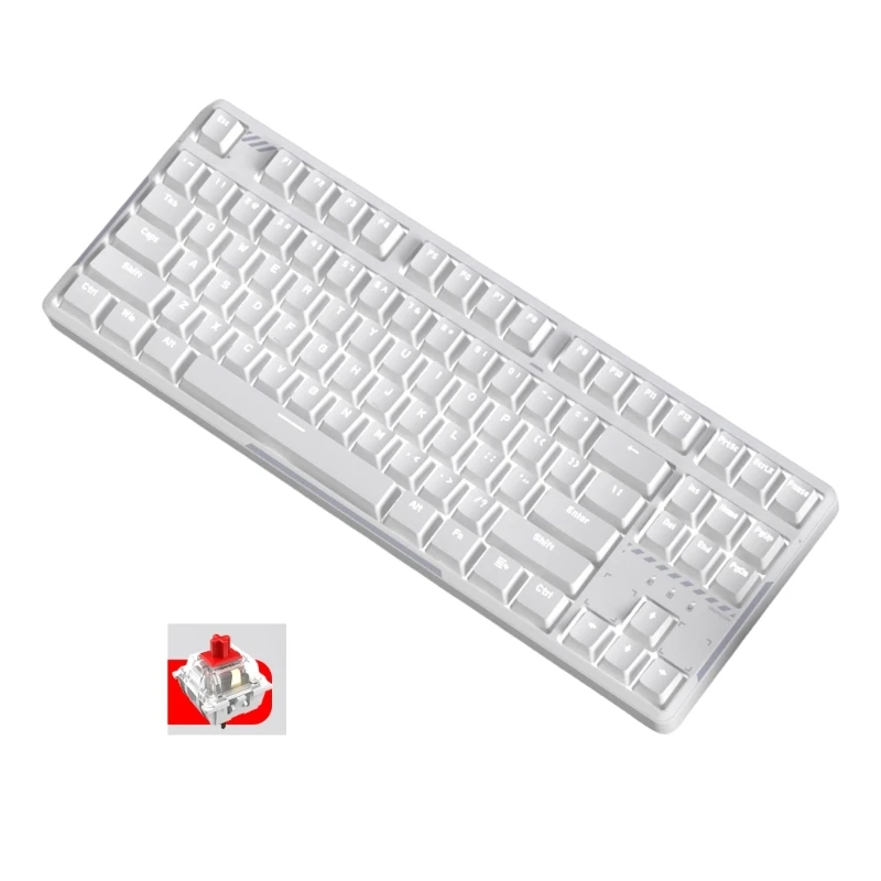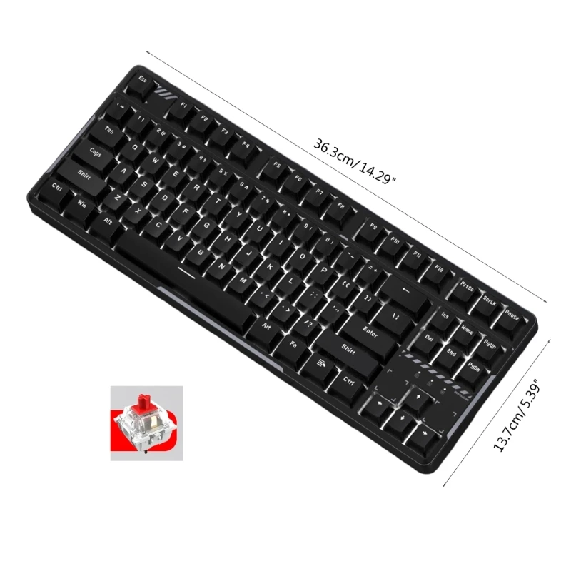 Diseño compacto de 87 teclas, no solo conserva las teclas de uso común, sino que también amplía el espacio del ratón en la mano derecha infinitamente, fácil de transportar y usar.