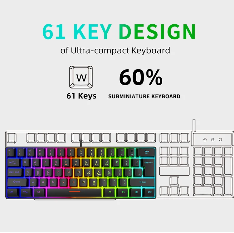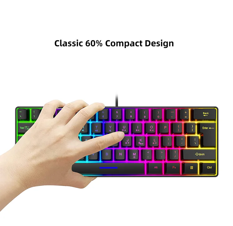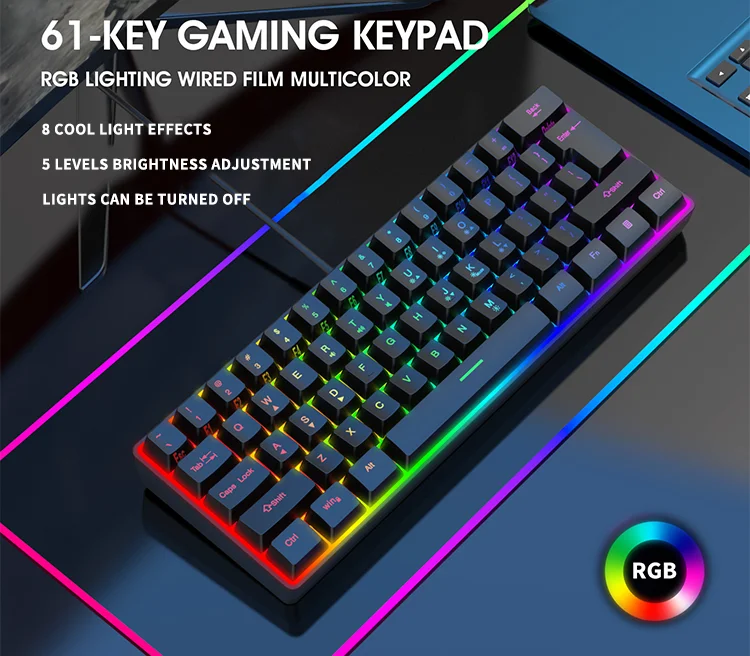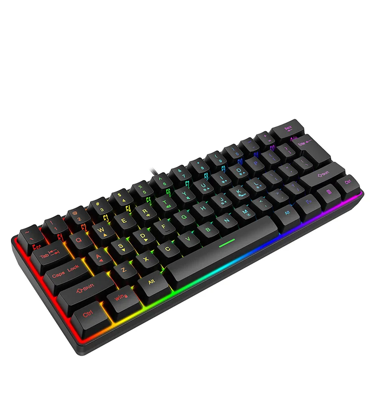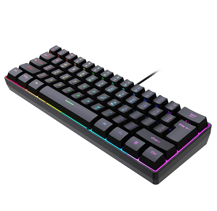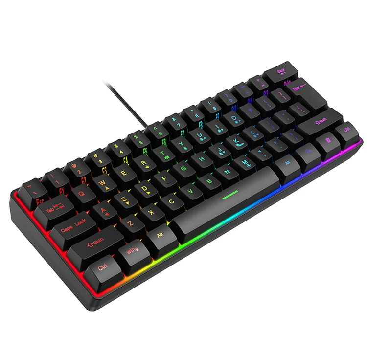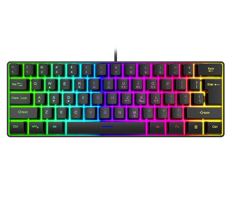 Comprar Teclado con cable para Juegos pequeños, 61 teclas, Color RGB, luz de alto nivel de apariencia, sensación mecánica, línea TPC