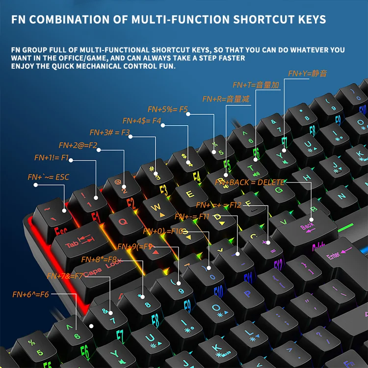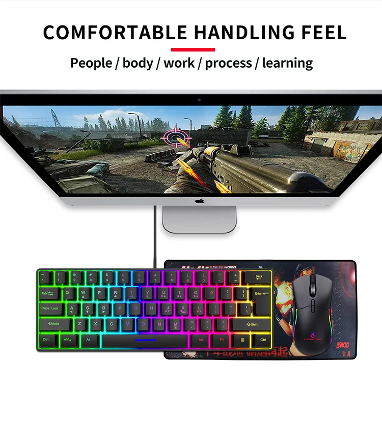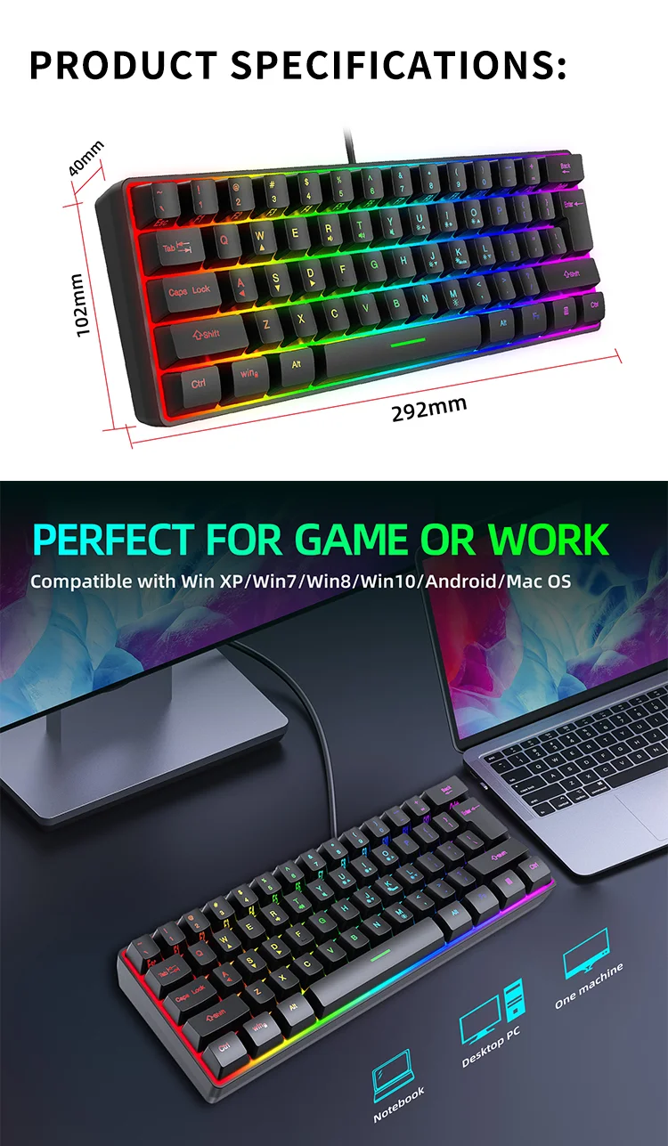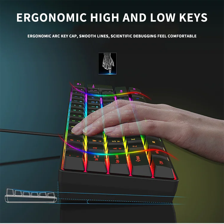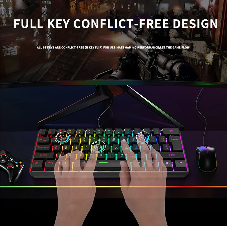 Comprar Teclado con cable para Juegos pequeños, 61 teclas, Color RGB, luz de alto nivel de apariencia, sensación mecánica, línea TPC