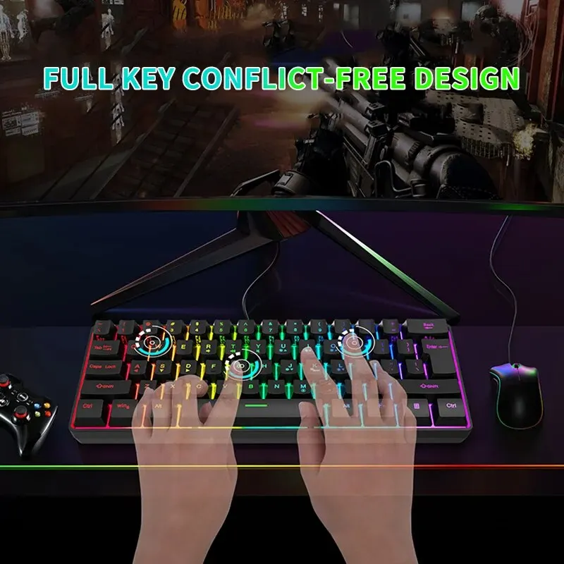 Comprar Teclado con cable para Juegos pequeños, 61 teclas, Color RGB, luz de alto nivel de apariencia, sensación mecánica, línea TPC