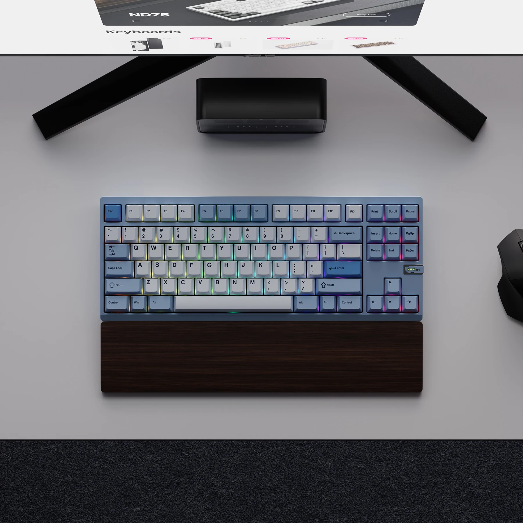 El teclado de 87 teclas presenta un diseño compacto que se adapta perfectamente a varias configuraciones de escritorio, ahorrando espacio y mejorando la eficiencia del trabajo.