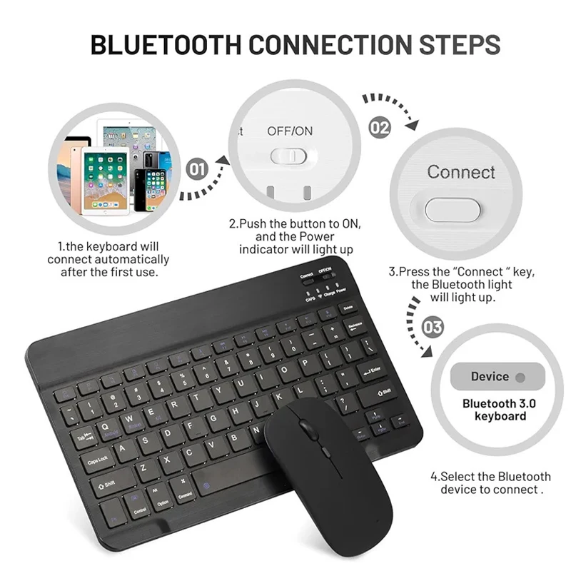 3: Encienda el interruptor compatible con Bluetooth del dispositivo como tableta/teléfono inteligente, busque el dispositivo compatible con Bluetooth, el nombre predeterminado compatible con Bluetooth del teclado: teclado 3,0 compatible con Bluetooth.