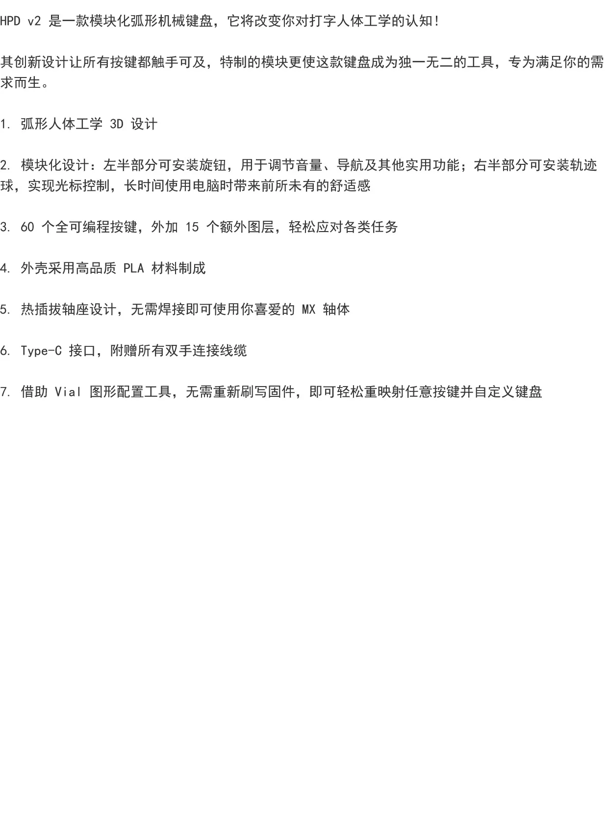 Nombre del producto:HPD V2Teclado dividido