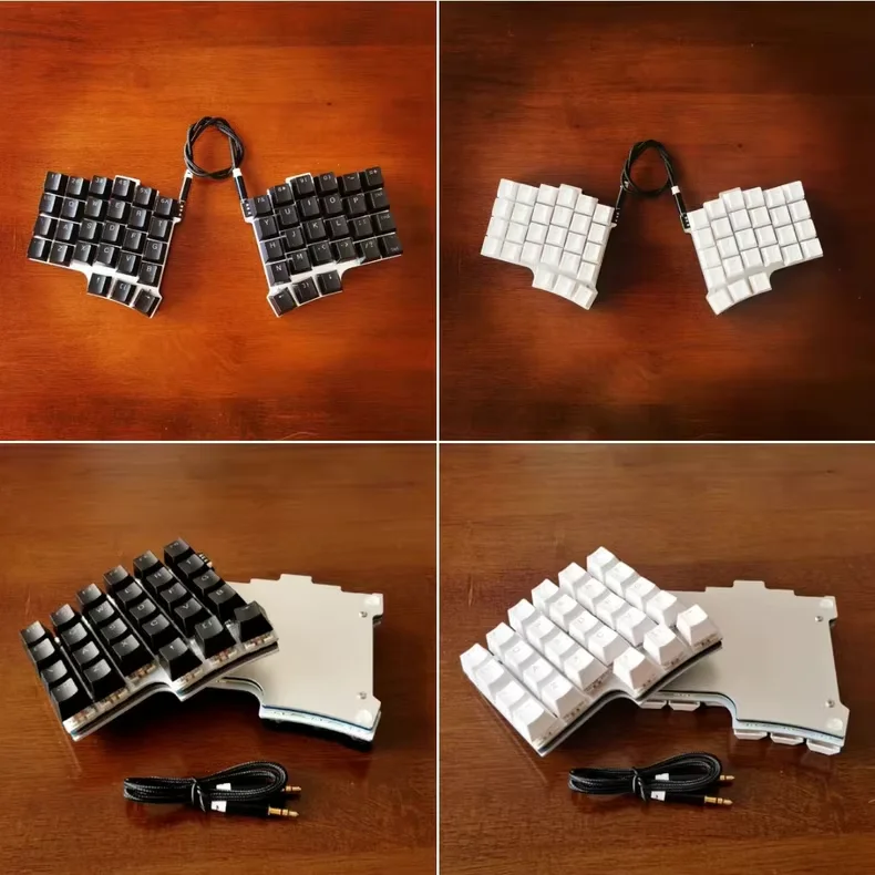Posiciones clave de diseño ergonómico + estructura dividida, fácil para los dedos y los hombros;El producto contiene dos partes divididas a la izquierda y a la derecha y un cable TRS que conecta las partes divididas, la longitud del cable es de aproximadamente 50 cm (Nota: el cable TRS que conecta las dos partes divididas no admite conexión en caliente, no lo conecte ni desconecte cuando el teclado está encendido);