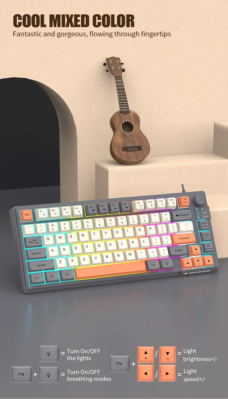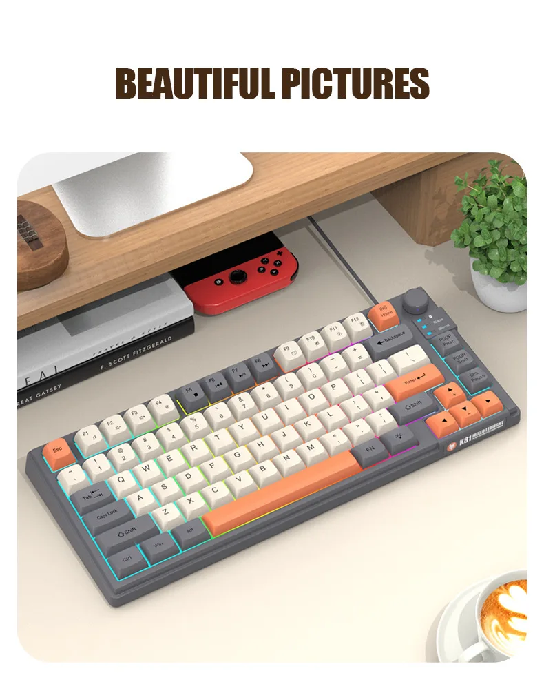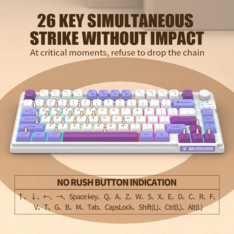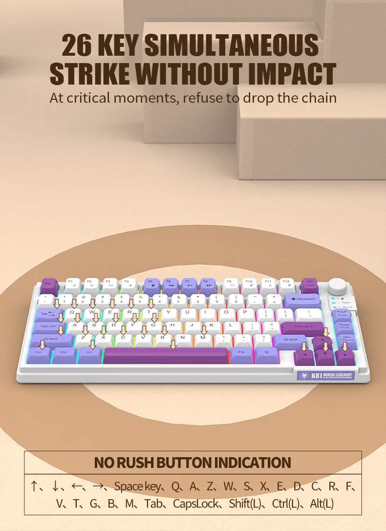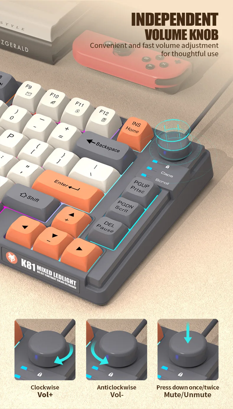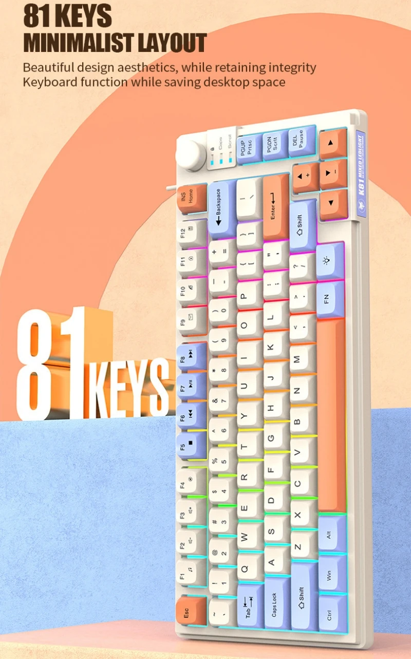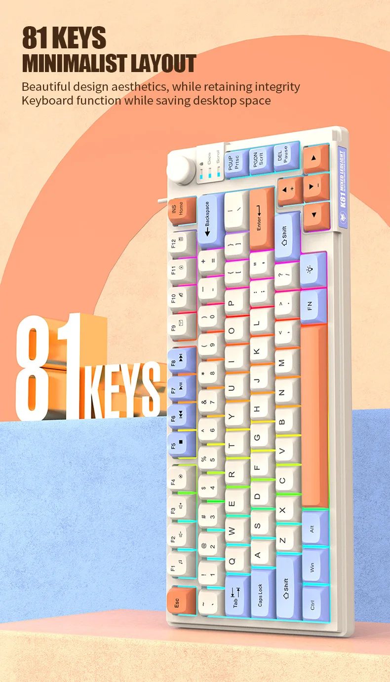 Comprar Teclado español con Ñ Teclado para juegos K81 81 teclas Diseño 80% Teclado árabe español con la Ñ ruso coreano retroiluminación RGB con cable USB 26 teclas Sin impacto Perilla de volumen Diseño ergonómico