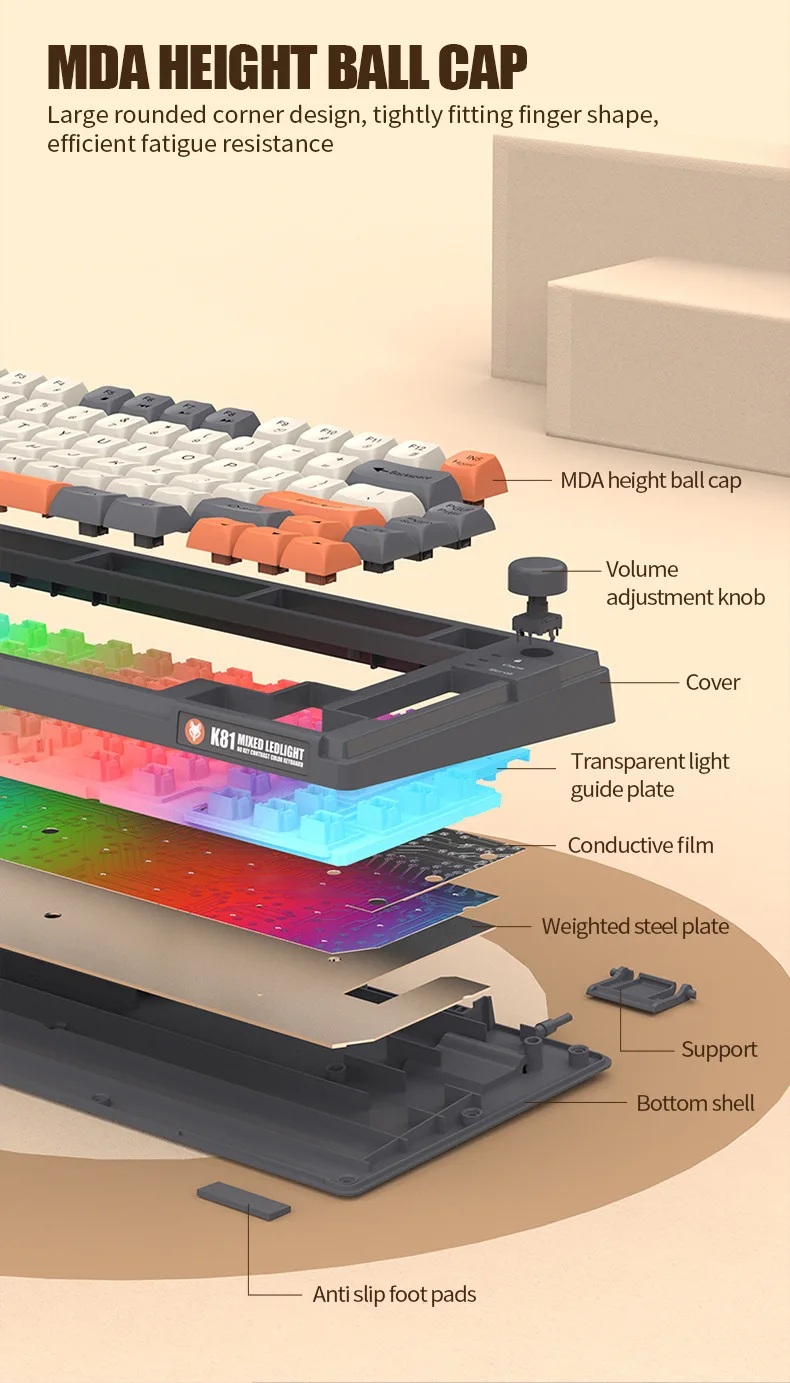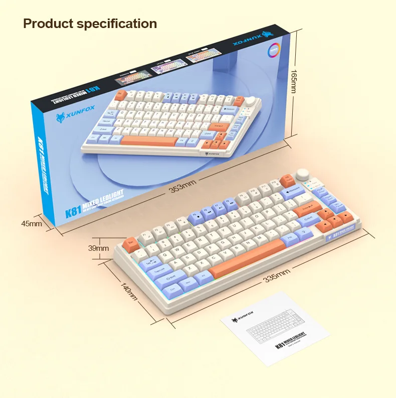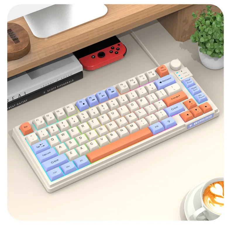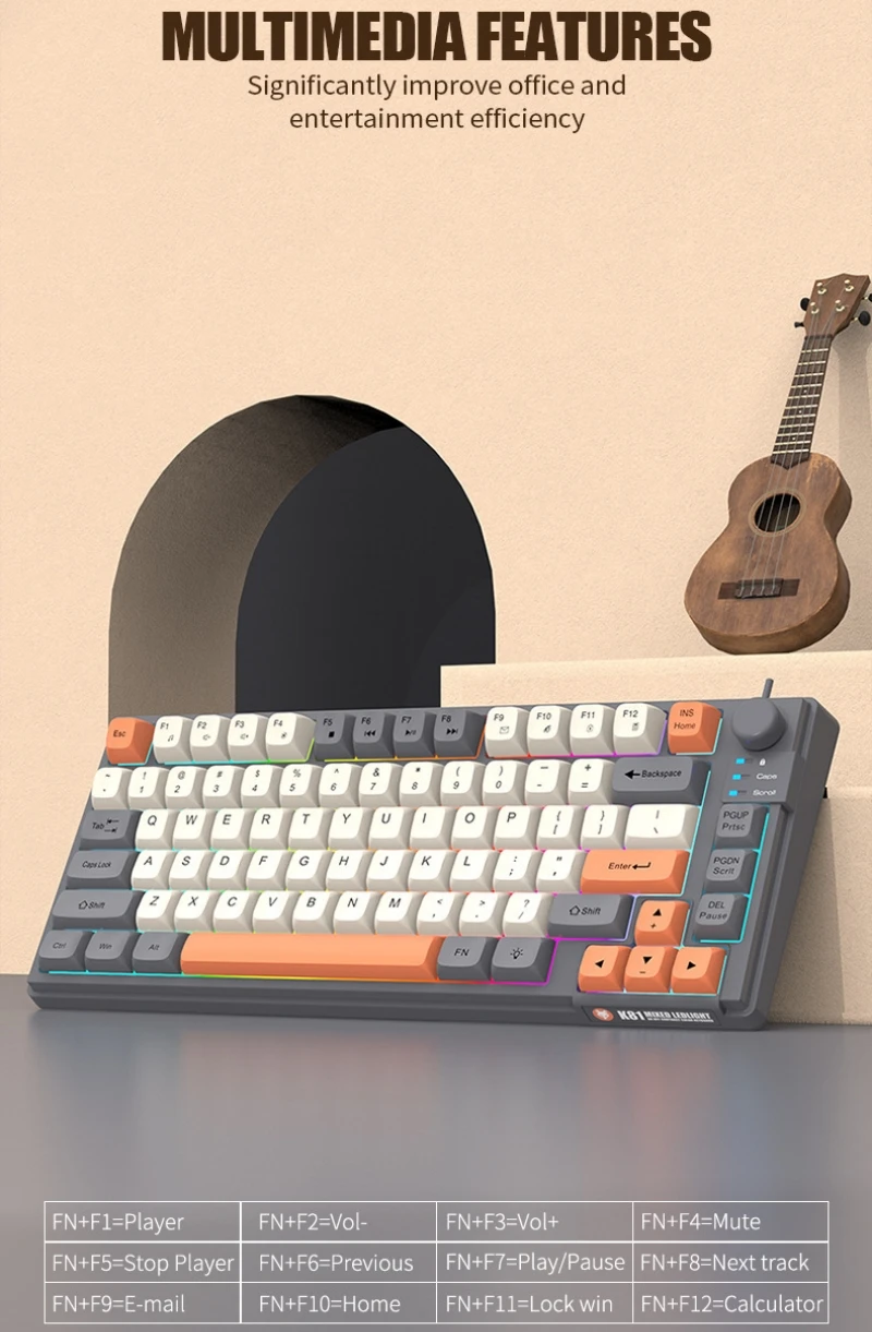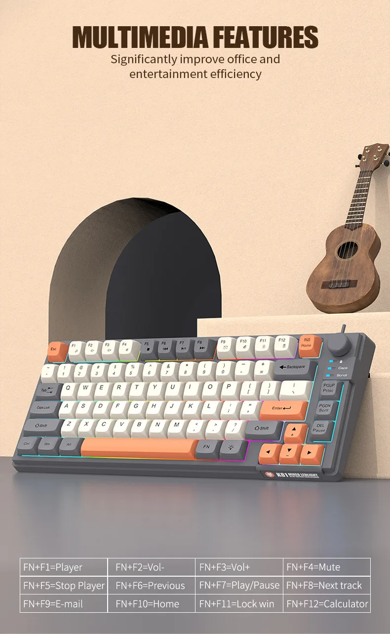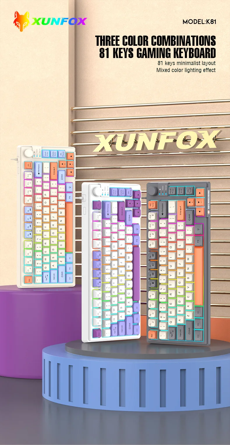 Comprar Teclado español con Ñ Teclado para juegos K81 81 teclas Diseño 80% Teclado árabe español con la Ñ ruso coreano retroiluminación RGB con cable USB 26 teclas Sin impacto Perilla de volumen Diseño ergonómico