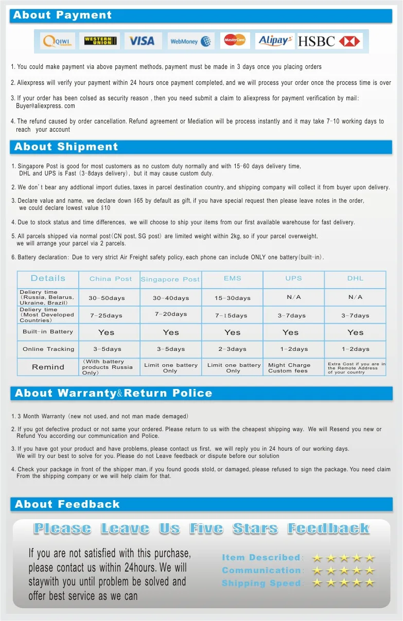 2. All returned items MUST BE in the original packaging and you MUST PROVIDE us with the shipping tracking number, specific reason for the return, and your po#.3. We will refund YOUR FULL WINNING BID AMOUNT, upon receipt of the item in its original condition and packaging with all components and accessories included, AFTER BOTH Buyer and Seller cancel the transaction from aliexpress. OR, you may choose to have a replacement.4. We will bear all the shipping cost if the product(s) is (are) not as advertised.