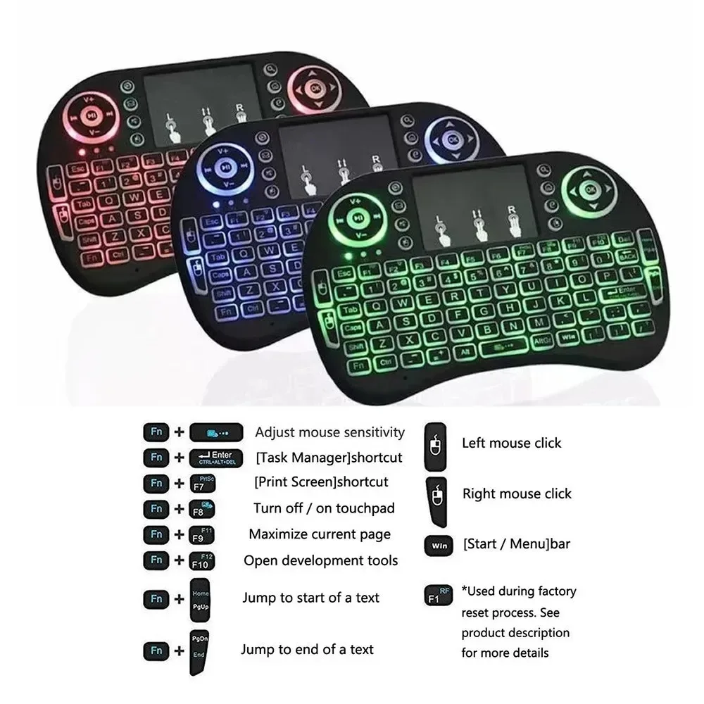 Comprar Teclado inalámbrico de 2,4G, miniteclado retroiluminado, ratón aéreo en inglés y ruso con panel táctil para ordenador portátil, Android, Windows, Mac OS