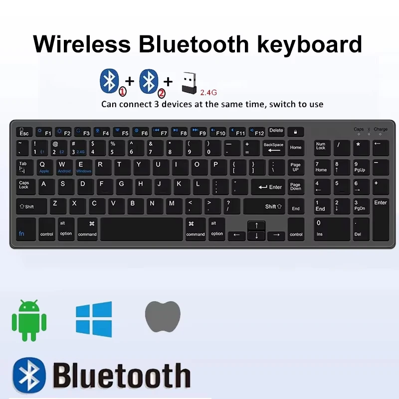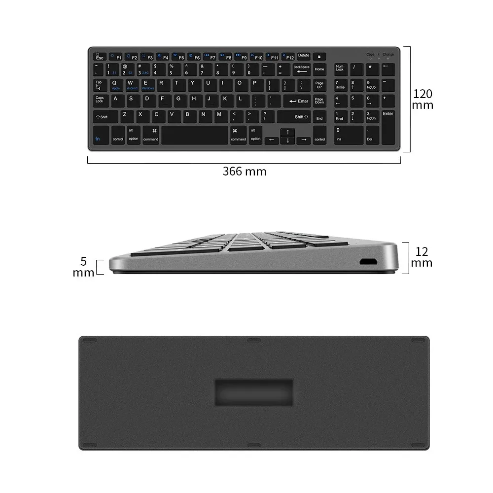 Comprar Teclado inalámbrico Bluetooth 5,0 receptor 2,4G inglés 102 teclas para MacBook iPad USB C teclado recargable accesorios de PC