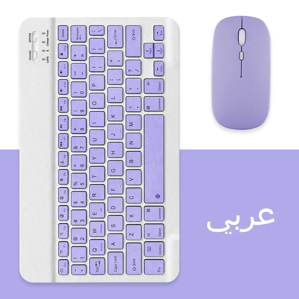 El teclado y el mouse adoptan tecnología avanzada de chip Bluetooth para proporcionar una conexión inalámbrica estable y potente, es fácil de conectar y de usar.El rango de trabajo de hasta 10 m.Este teclado cuenta con control de volumen, teclas de acceso rápido anteriores, posteriores y otros medios.