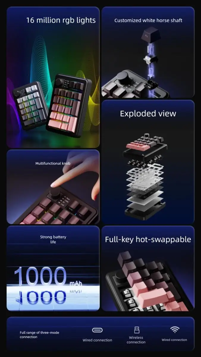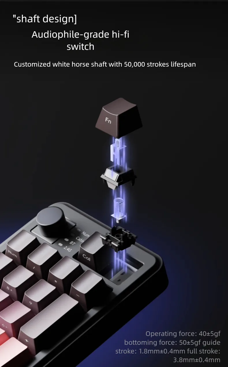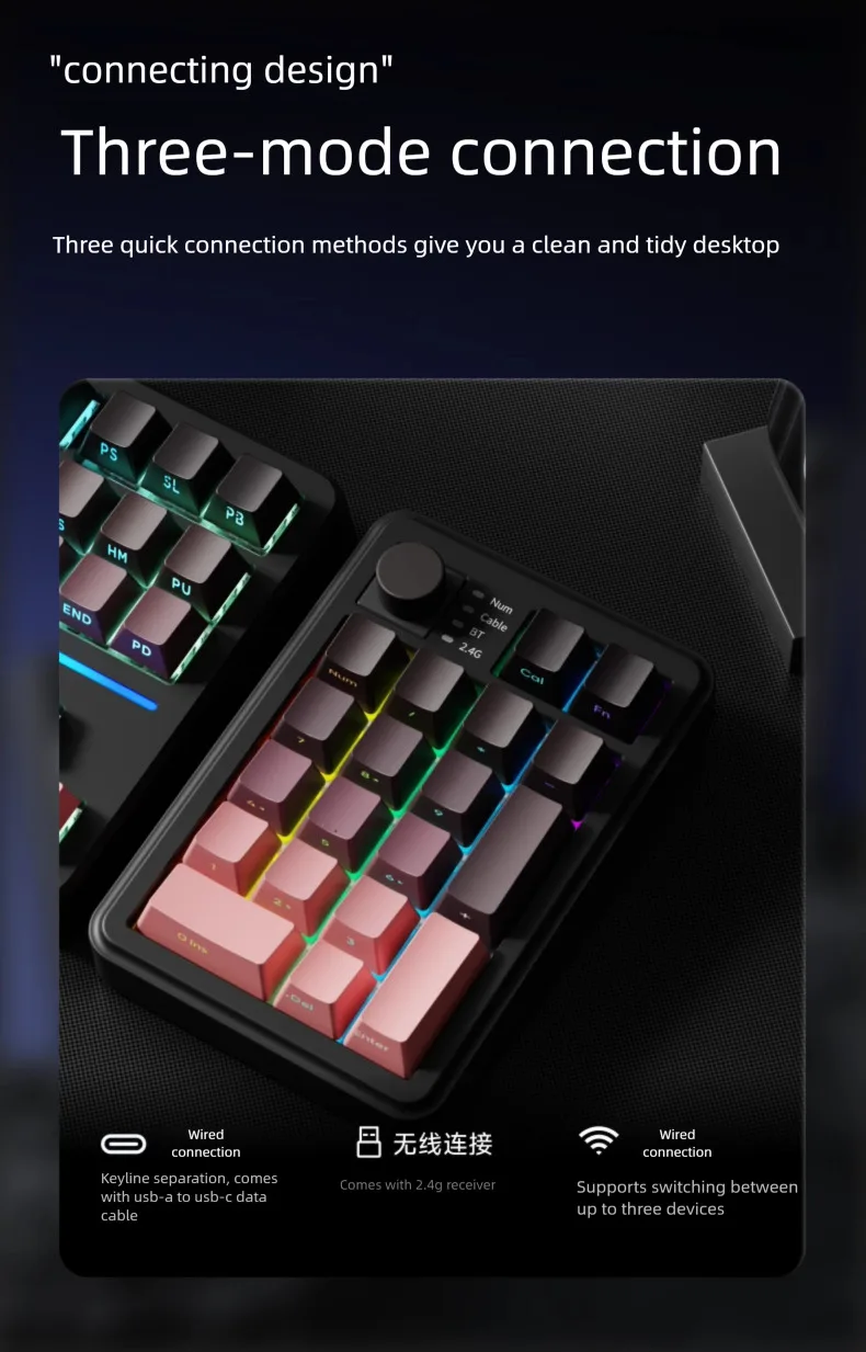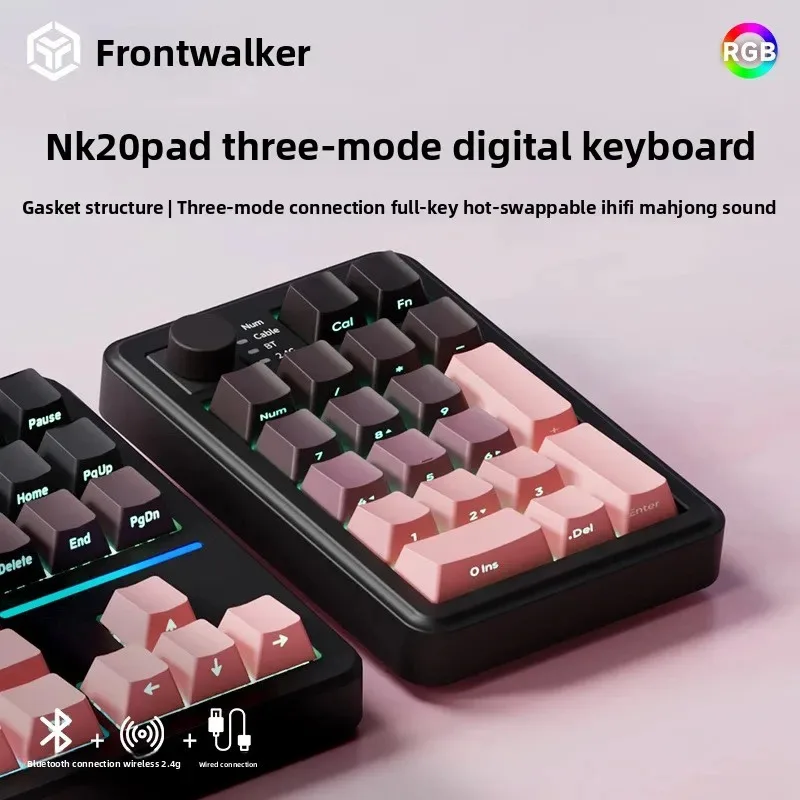 NK20PAD Teclado numérico inalámbrico Bluetooth de tres modos Estructura de junta Teclado de conexión en caliente de todas las teclas grabado lateral para PC portátil