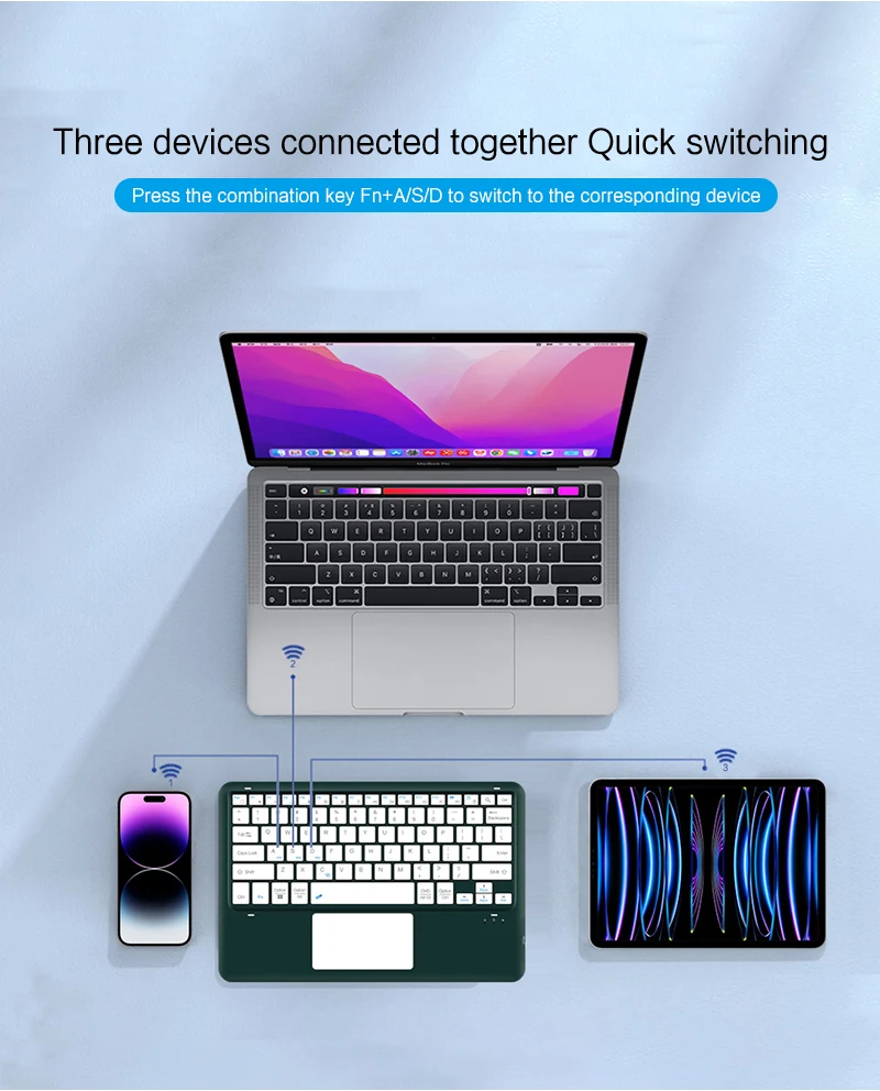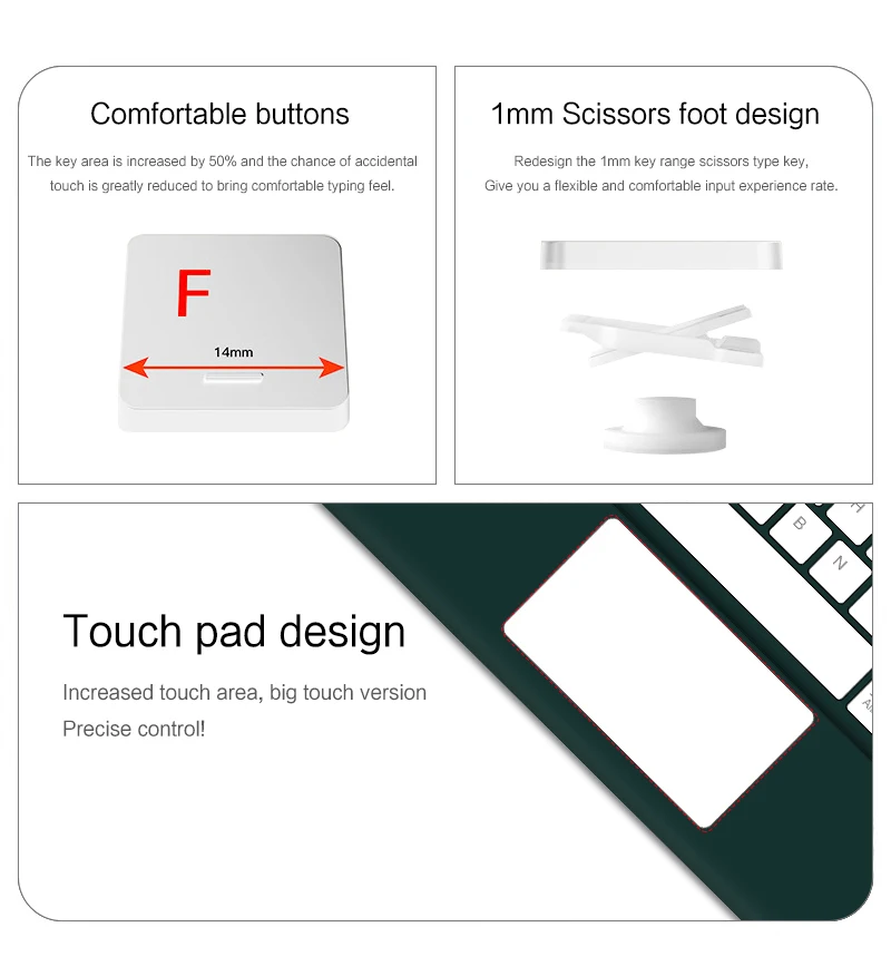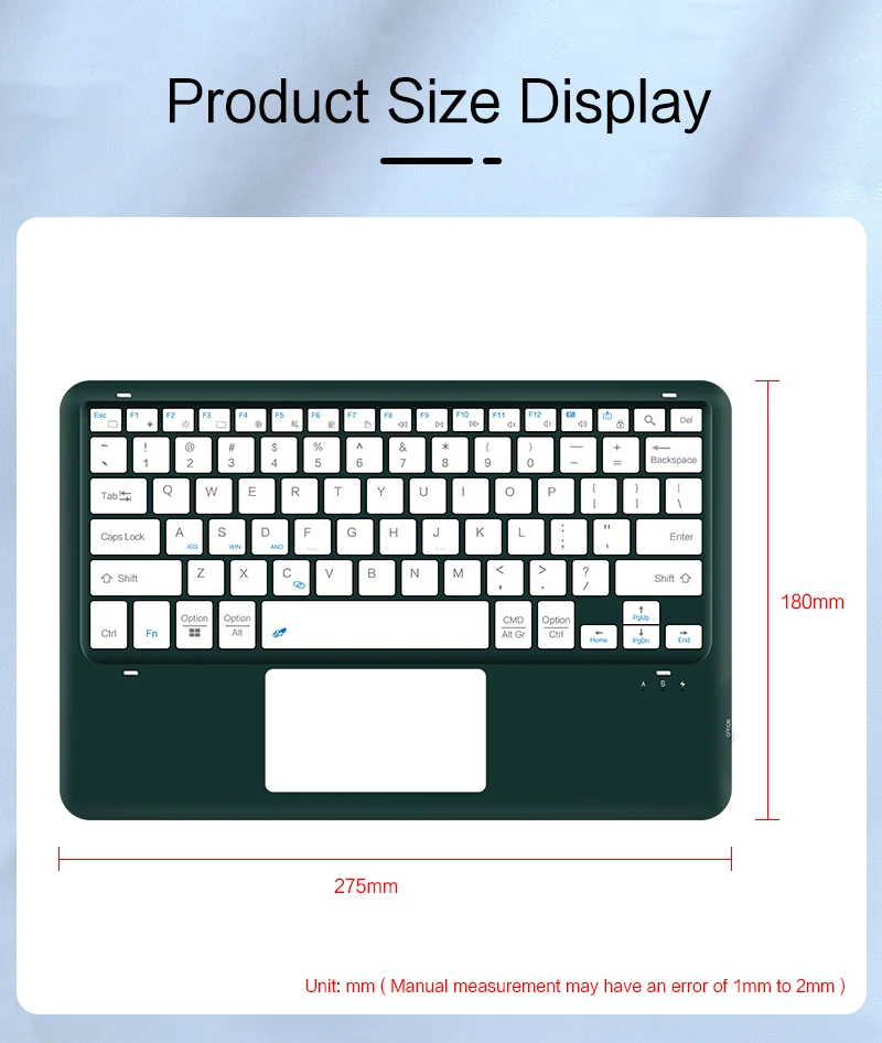 Nota: Este teclado es grande, cabe muy bien en tabletas de 10,1-12,9 pulgadas, pero también puede funcionar con tabletas de 9", 8", 10,8", 11" o más grandes.