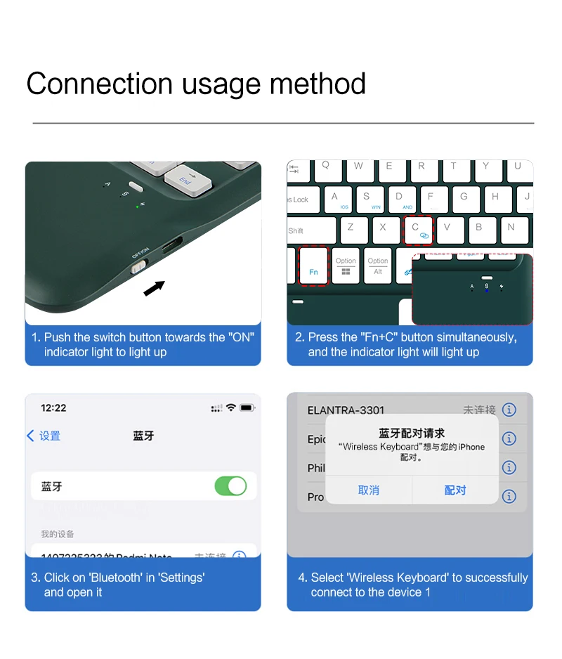 【3】;abra su dispositivo (Tablet) para abrir la función de búsqueda de Bluetooth, busque [teclado], haga clic en la conexión