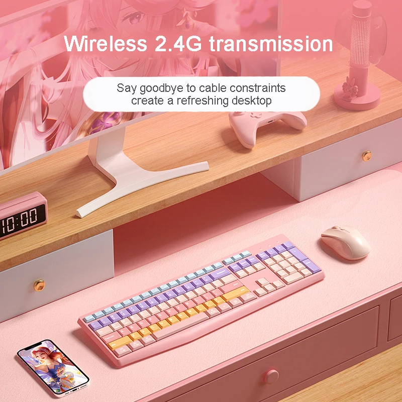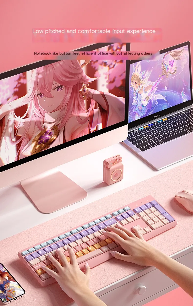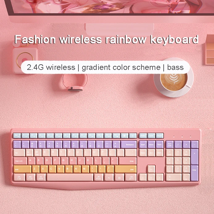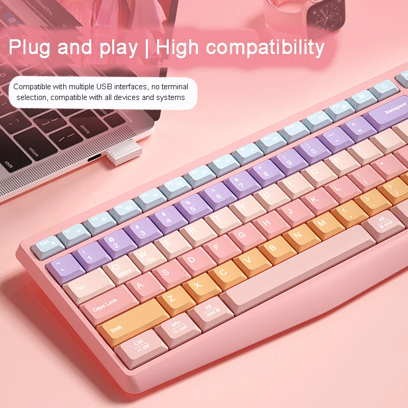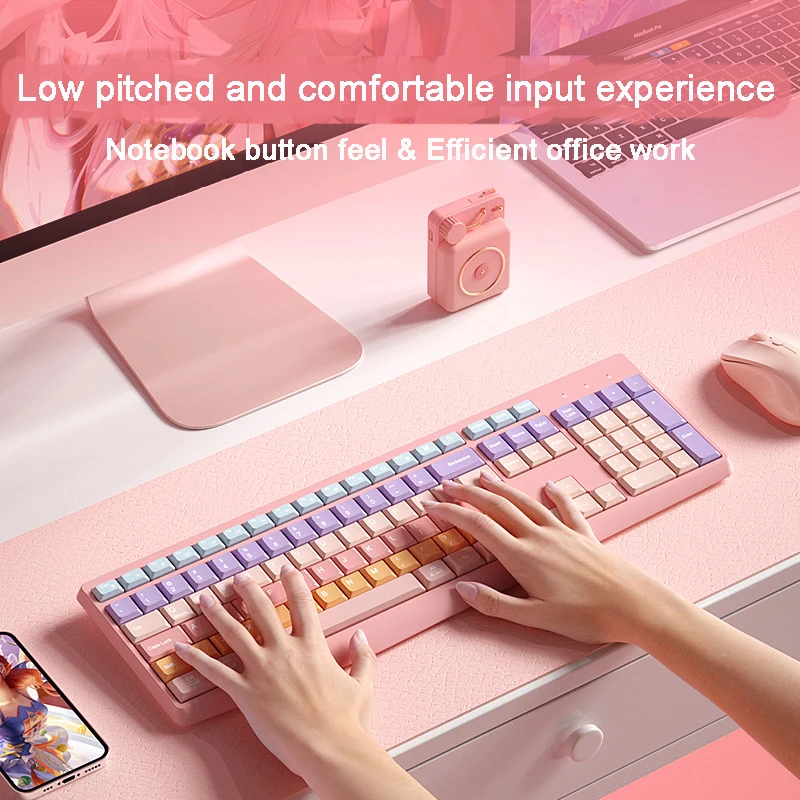 Teclado colorido de modo dual inalámbrico 2,4 GHz Bluetooth 106 teclas teclado numérico silencioso ergonómico accesorios de computadora para Mac Win