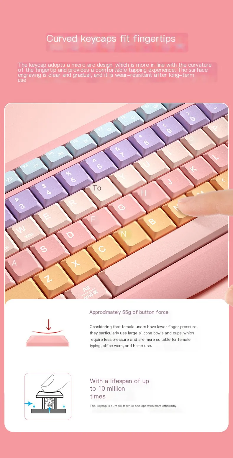 [Diseño estético y duradero]-El teclado estético viene con teclas curvas coloridas y teclas de perfil bajo para una sensación cómoda. Teclas ABS duraderas, letras con revestimiento UV impreso, por lo que las letras no se rayarán fácilmente. Reemplace la batería AAA y úsela sin preocuparse por el envejecimiento de la batería de litio incorporada.