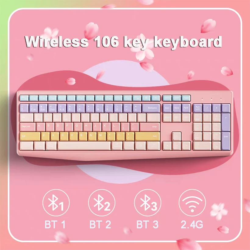 Comprar Teclado inalámbrico colorido de modo Dual, teclado numérico de 2,4 GHz, Bluetooth, 106 teclas, silencioso, ergonómico, Accesorios de ordenador para Mac Win