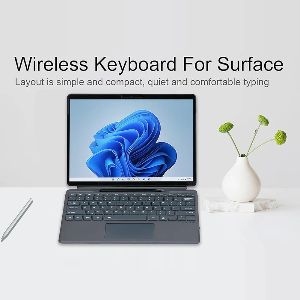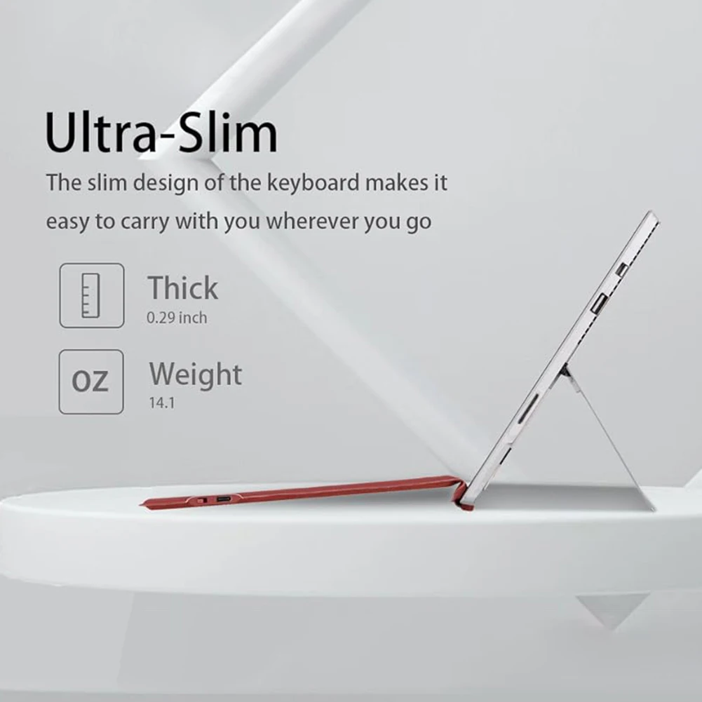 2.Delgado y portátil:El teclado inalámbrico delgado retroiluminado cuenta con un diseño liviano y delgado, lo que lo convierte en una combinación perfecta para dispositivos Surface Pro.Su perfil delgado facilita su transporte y almacenamiento, lo que permite a los usuarios llevarlo consigo sin esfuerzo cuando viajan o están en movimiento.