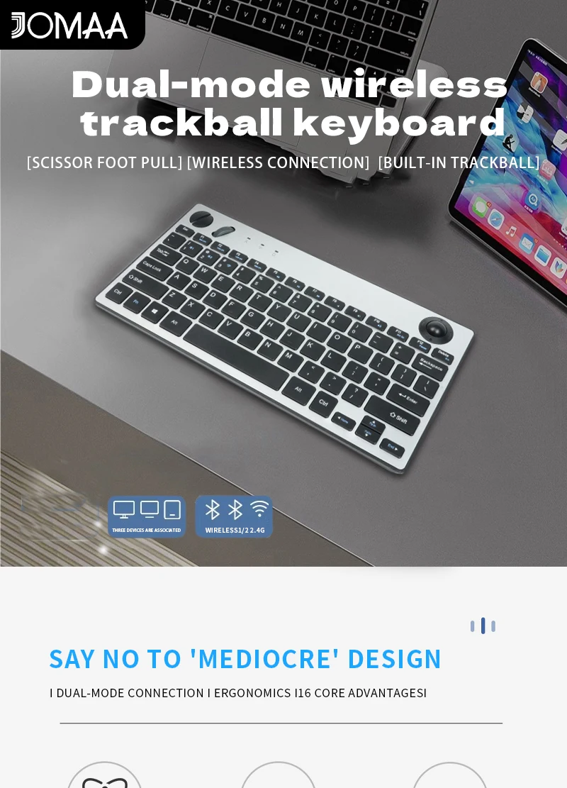 Comprar Teclado inalámbrico JOMAA con Trackball Air Mouse teclado Bluetooth de 1600dpi para TV iPad teléfono portátil teclado de clic deslizante